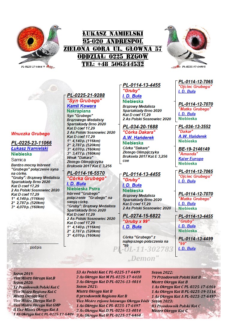 PL-0225-23-11066 - Inbred GRUBY Brązowy Medalista Spartakiady Brno 2020 KatD coef 17,29
