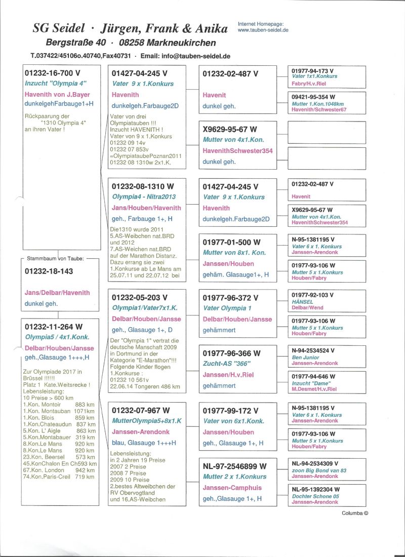 Havenith , gołąb dalekodystansowy. Wnuk (wnuczka)Olimpijki Bruksela 2017 kat.E daleki dystans DV 01232-11-264, m.in. zdobyła 4x 1 konk. na odległości nad 800 km.Rodzina Seidel posiada siedmiu Olimpijczyków w kategorii daleki dystans, m.in. DV 01232-15-306 Olimpijka z Oradea 2022, pierwszy gołąb niemiec i 17 świata. Gołąbki zaszczepione msv i odrobaczone. Transport gołębi kurierem po wcześniejszym uzgodnieniu,odbiór osobisty.
