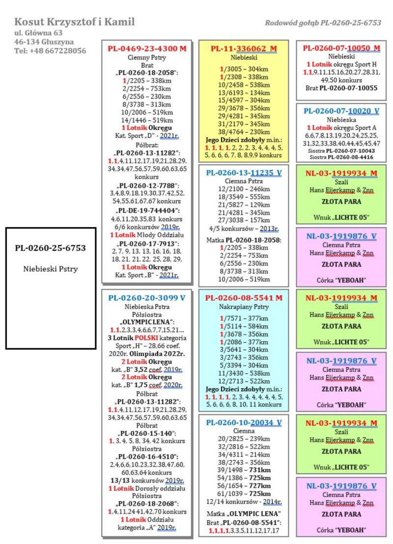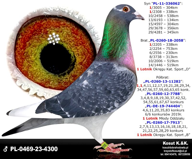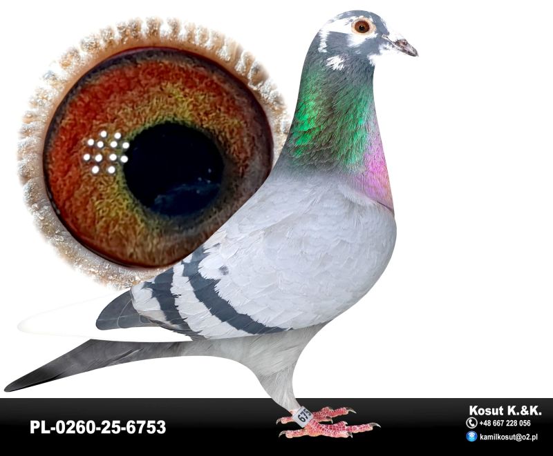 Oryginalny gołąb z hodowli Krzysztof i Kamil Kosut. Szczegóły pochodzenia w rodowodzie. Więcej informacji na stronie facebook.com/kosut.dobrahodowla oraz pod nr tel.: 667 228 056. Dostawa gołębi będzie realizowana po zakończeniu aukcji kurierem 165zł lub odbiór osobisty. Możliwy jest także odbiór osobisty. *Płeć prawdopodobnie samiec*