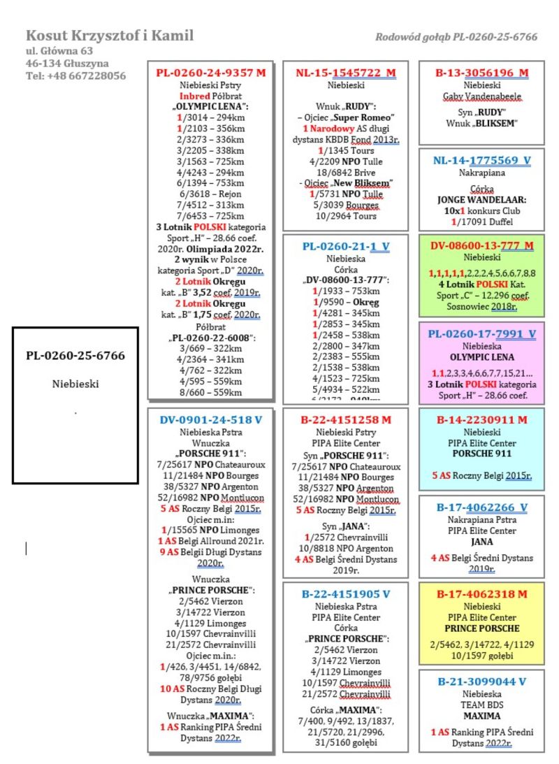 Oryginalny gołąb z hodowli Krzysztof i Kamil Kosut. Szczegóły pochodzenia w rodowodzie. Więcej informacji na stronie facebook.com/kosut.dobrahodowla oraz pod nr tel.: 667 228 056. Dostawa gołębi będzie realizowana po zakończeniu aukcji kurierem 165zł lub odbiór osobisty. Możliwy jest także odbiór osobisty.