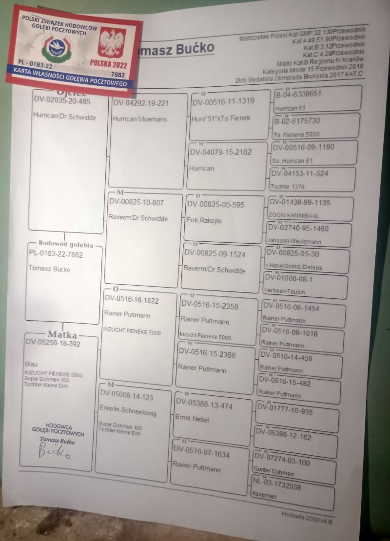Oryginalny gołąb z hodowli Tomasza Bućko. Samica o ładnej budowie i barwie. Szczegóły pochodzenia w rodowodzie. Więcej informacji pod nr tel.: 515442922