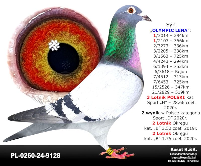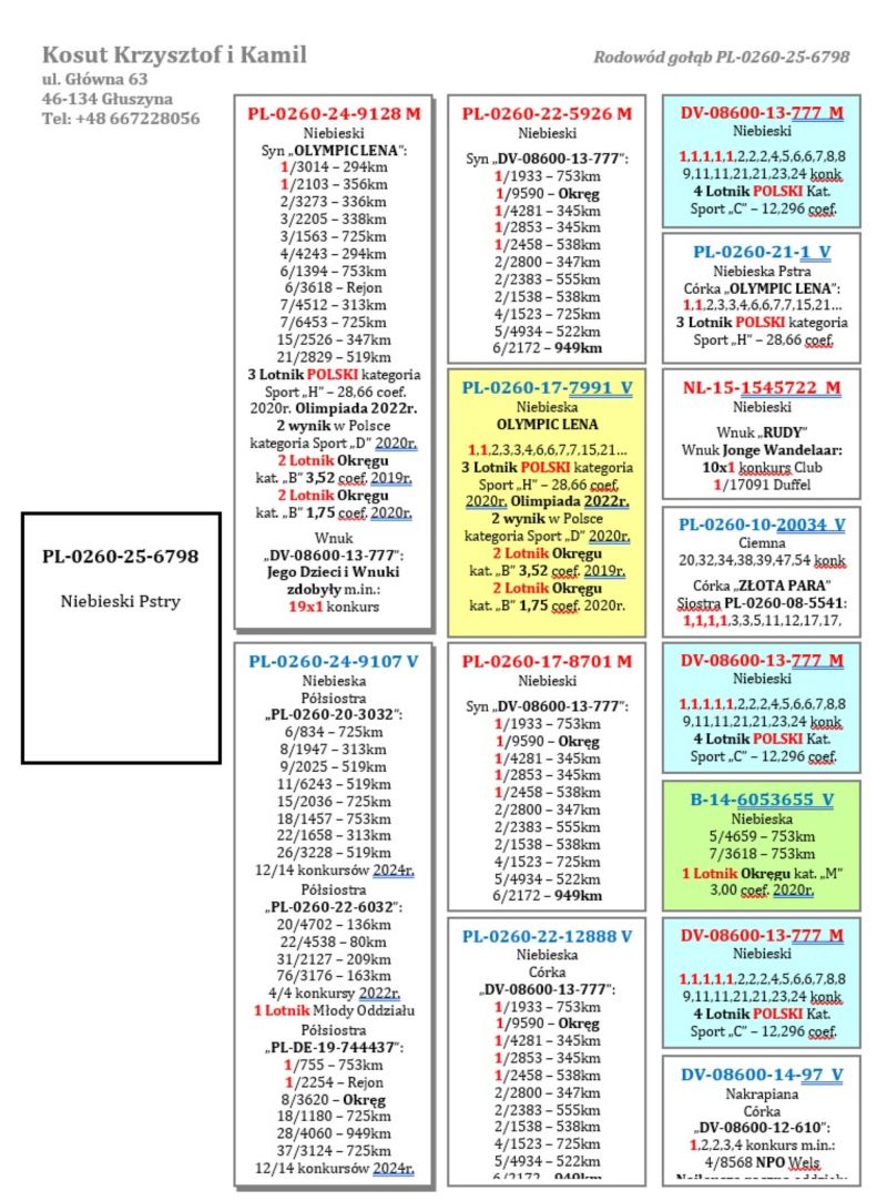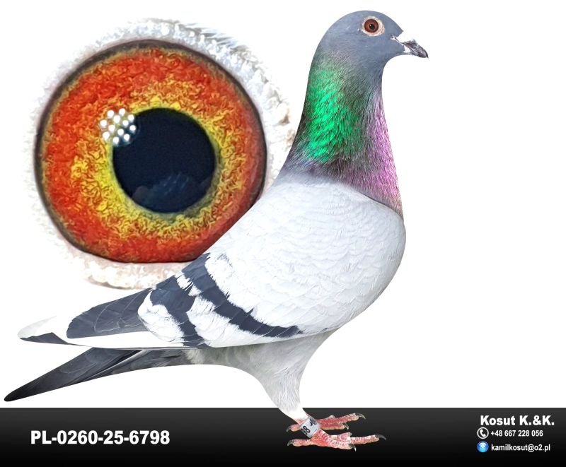 Oryginalny gołąb z hodowli Krzysztof i Kamil Kosut. Szczegóły pochodzenia w rodowodzie. Więcej informacji na stronie facebook.com/kosut.dobrahodowla oraz pod nr tel.: 667 228 056. Dostawa gołębi będzie realizowana po zakończeniu aukcji kurierem 165zł lub odbiór osobisty. Możliwy jest także odbiór osobisty.