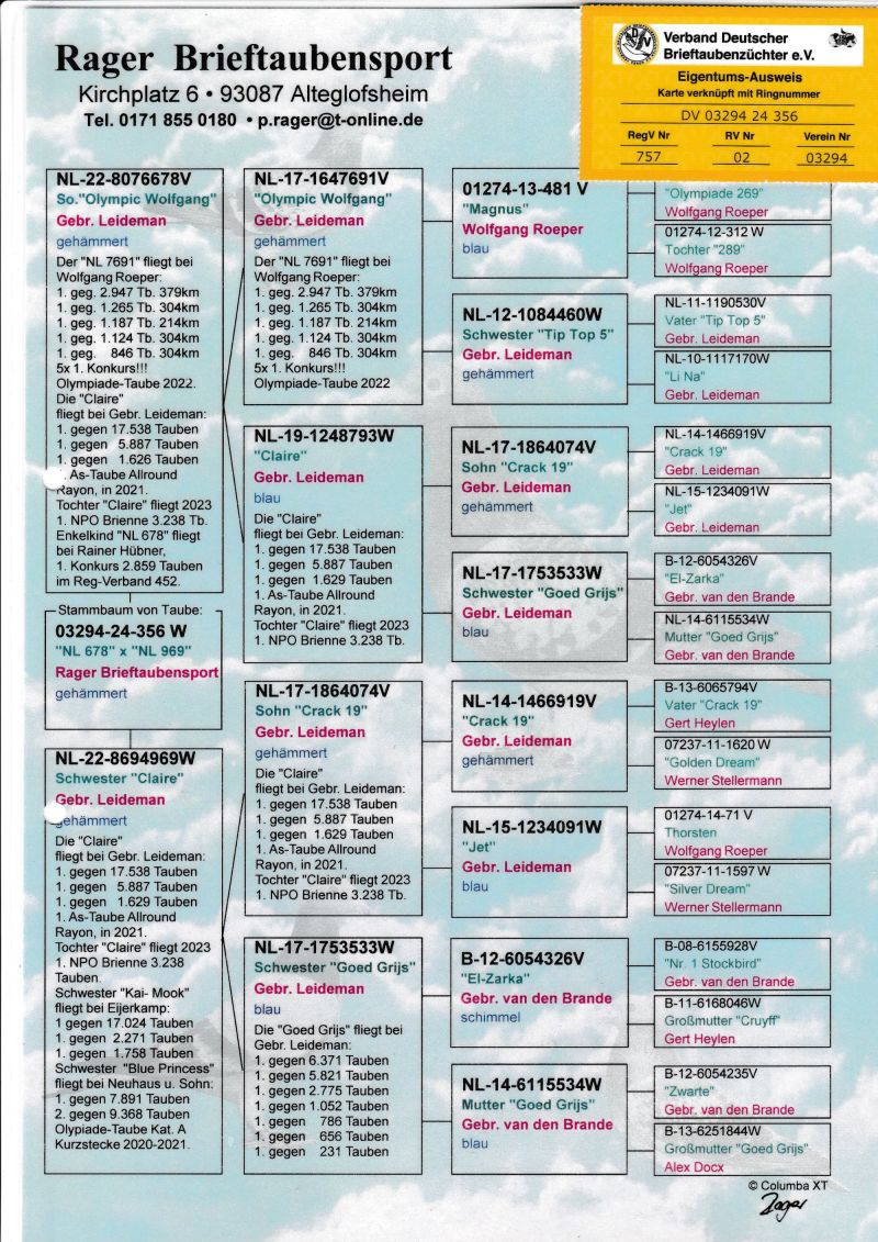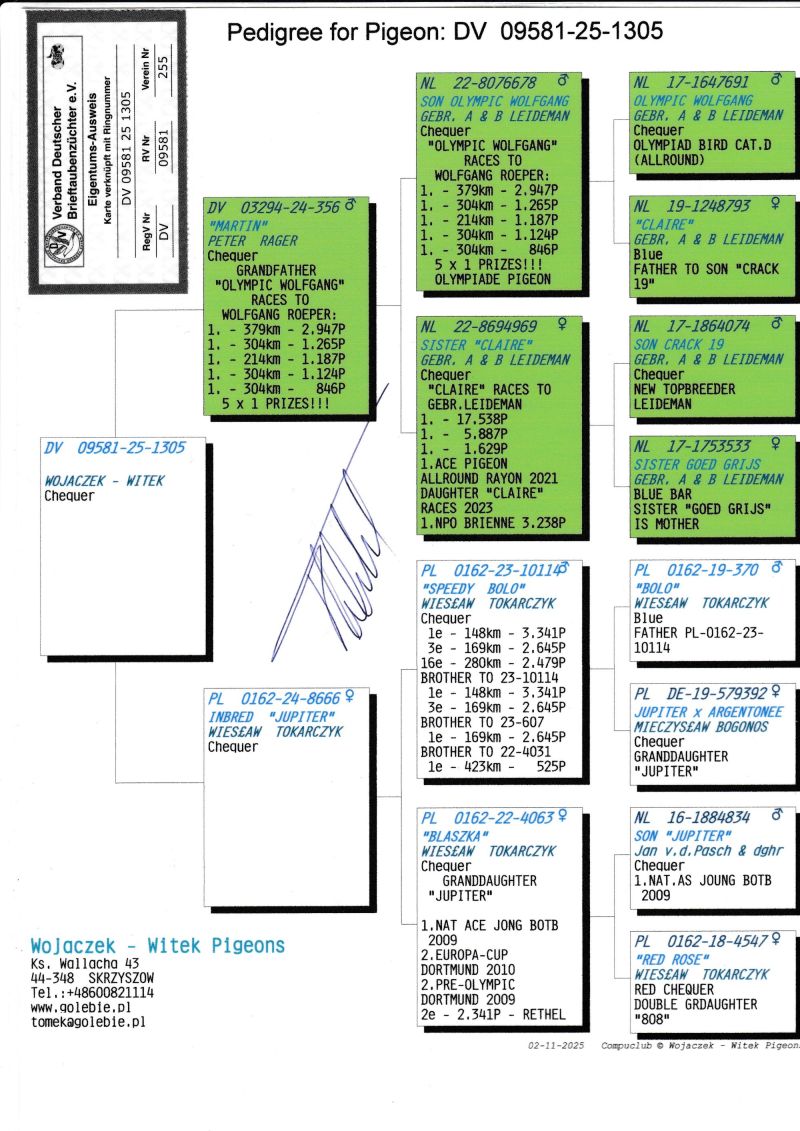 KOSZT TRANSPORTU 120 ZŁ (maksymalnie 3 gołębie w jednej paczce). KOSZTA ZA GOŁĘBIA I TRANSPORT KLIENCI BĘDĄ PŁACIĆ BEZPOŚREDNIO KIEROWCY KTÓRY PRZYWIEZIE GOŁĘBIE. Gołąb z hodowli WOJACZEK-WITEK. Szczegóły pochodzenia w rodowodzie. Kontakt w sprawie gołębi oraz transportu pod numerem telefonu +48 600 821 114