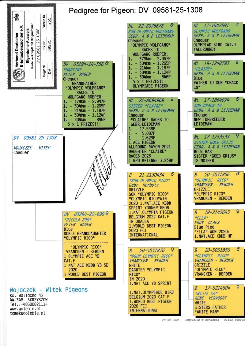 KOSZT TRANSPORTU 120 ZŁ (maksymalnie 3 gołębie w jednej paczce). KOSZTA ZA GOŁĘBIA I TRANSPORT KLIENCI BĘDĄ PŁACIĆ BEZPOŚREDNIO KIEROWCY KTÓRY PRZYWIEZIE GOŁĘBIE. Gołąb z hodowli WOJACZEK-WITEK. Szczegóły pochodzenia w rodowodzie. Kontakt w sprawie gołębi oraz transportu pod numerem telefonu +48 600 821 114