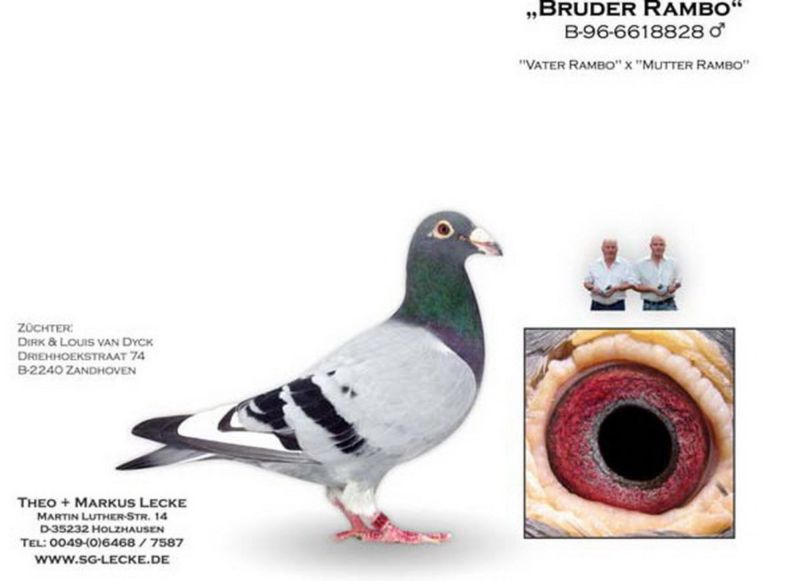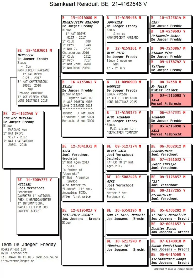 Wnuk DV 364, wybitnego rozpłodowca po bracie RAMBO Dirka Van Dyck. Matka oryg. Freddy De Jaeger wnuczka MARIANO i AGEN Joela Verschoota. Szczegóły pochodzenia w rodowodzie i pod nr tel. 696 241 555