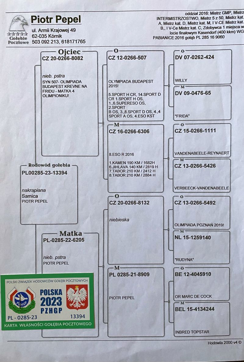 Oryginalny gołąb z hodowli Piotr Pepel. Szczegóły pochodzenia w rodowodzie. Więcej informacji pod nr tel.: 603820912