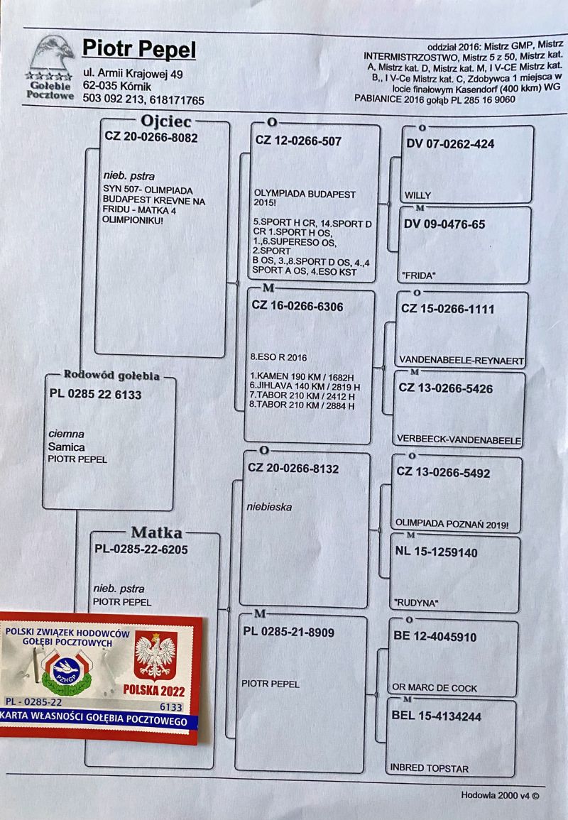 Oryginalny gołąb z hodowli Piotr Pepel. Szczegóły pochodzenia w rodowodzie. Więcej informacji pod nr tel.: 603820912