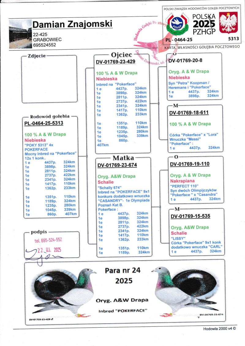 PL-0464-25-5313 100% A & W Drapa - inbred "Pokerface"