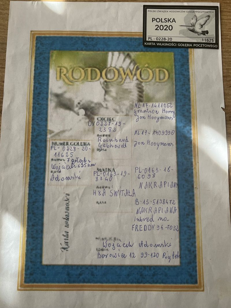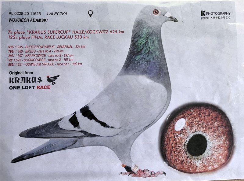 TOP POD WG - uczestnik WG KRAKUS 7 miejsce SUPERCUP 625km Oryginalny gołąb z hodowli Wojciecha Adamskiego. Szczegóły pochodzenia w rodowodzie. Więcej informacji pod nr tel.: 530131812 - z powodu wykonywanej pracy najlepiej SMS *Wysyłka kurierem ok. 150zł.