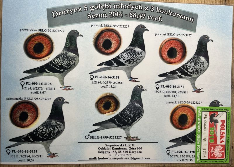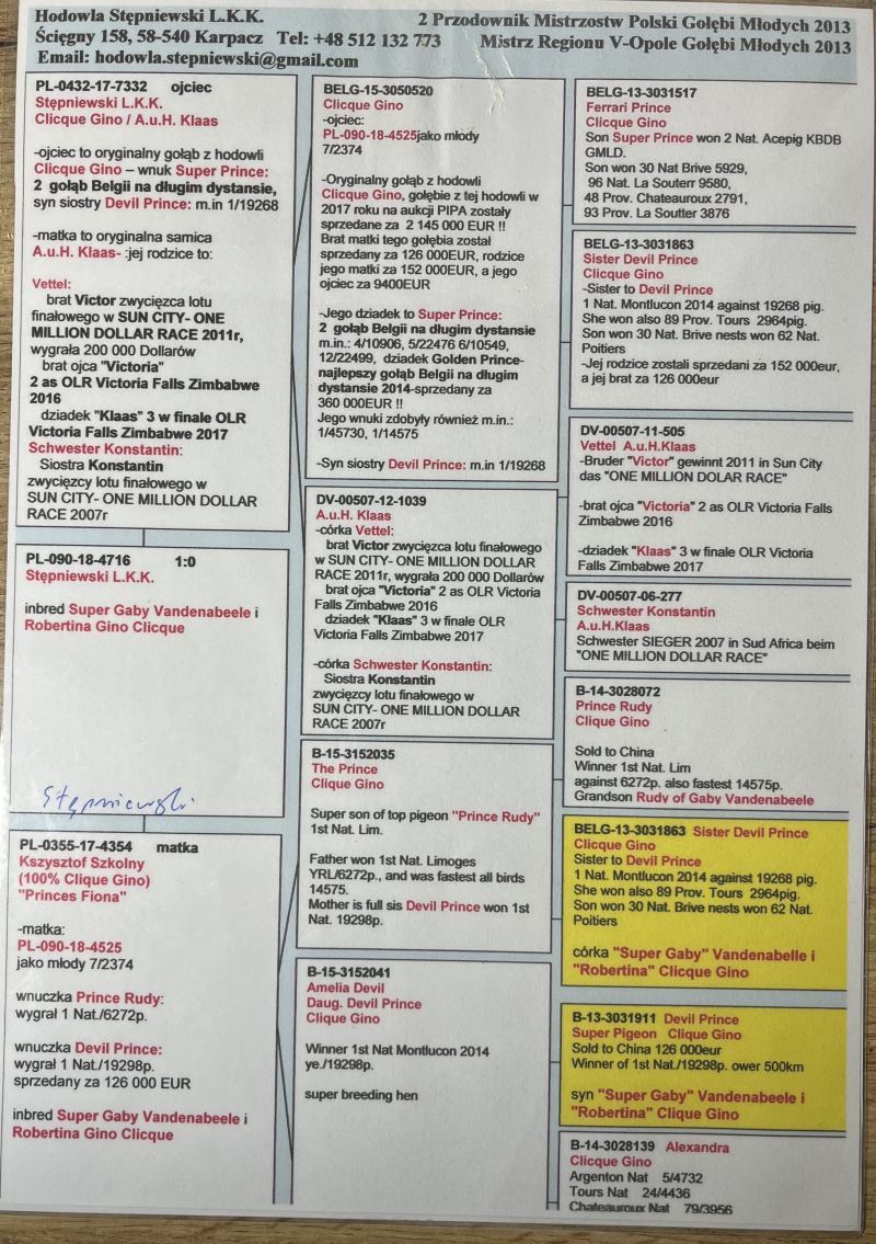 Oryginalny gołąb z hodowli LKK Stępniewski. Szczegóły pochodzenia w rodowodzie. Więcej informacji pod nr tel.: 530131812 - z powodu wykonywanej pracy najlepiej SMS *Wysyłka kurierem ok. 150zł.