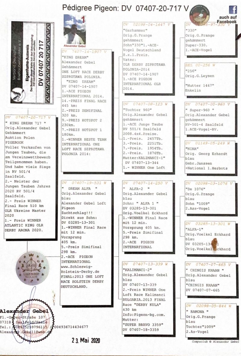TOP POD WG Oryginalny gołąb z hodowli Alexander Gebel. Szczegóły pochodzenia w rodowodzie. Więcej informacji pod nr tel.: 530131812 - z powodu wykonywanej pracy najlepiej SMS *Wysyłka kurierem ok. 150zł.