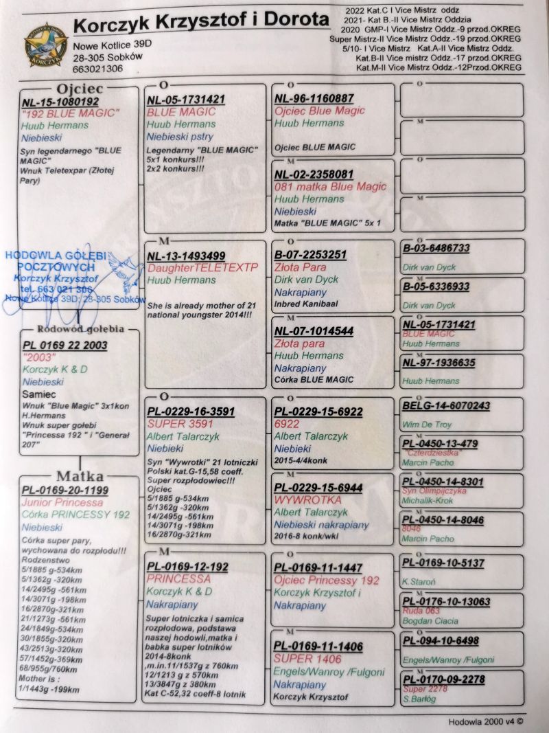 Oryginalny gołąb z hodowli Krzysztof i Dorota Korczyk. Szczegóły pochodzenia w rodowodzie. Więcej informacji pod nr tel.: 663 021 306
