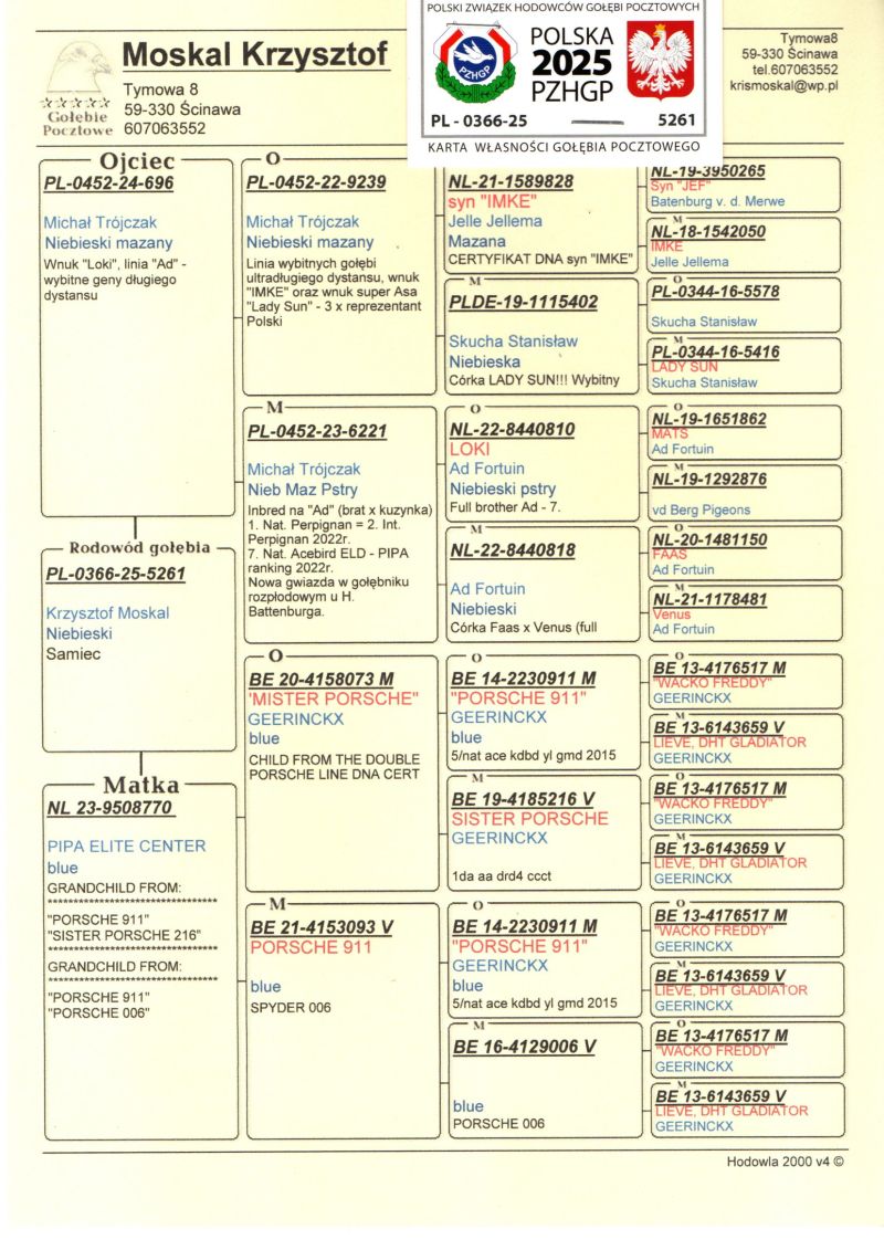 Oryginalny gołąb z hodowli Krzysztofa Moskala. Szczegóły pochodzenia w rodowodzie. Więcej informacji pod nr tel.: 607063552 *Kurier prywatny: 150zł