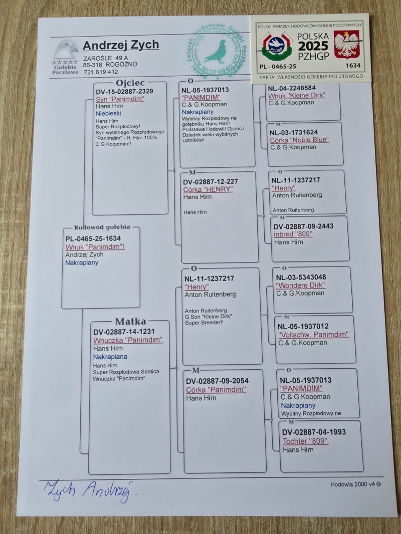 Oryginalny gołąb z hodowli Andrzeja Zycha. Szczegóły pochodzenia zamieszczone w rodowodzie. Więcej informacji pod numerem telefonu: 721 619 412