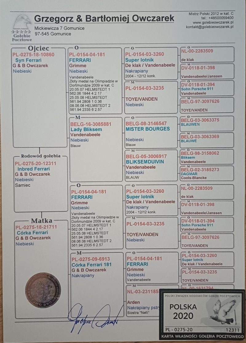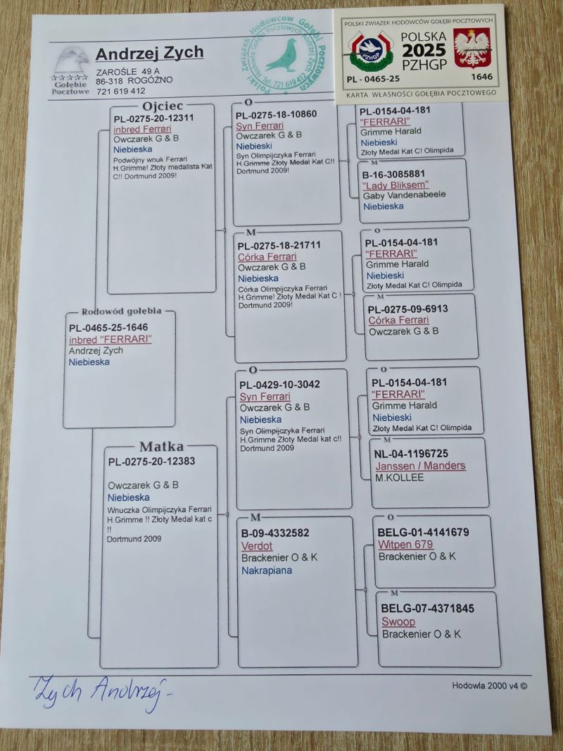 PL-0465-25-1646 - 100% H.Grimme! Super Inbred na Olimpijczyka FERRARI! Unikat! Okazja!