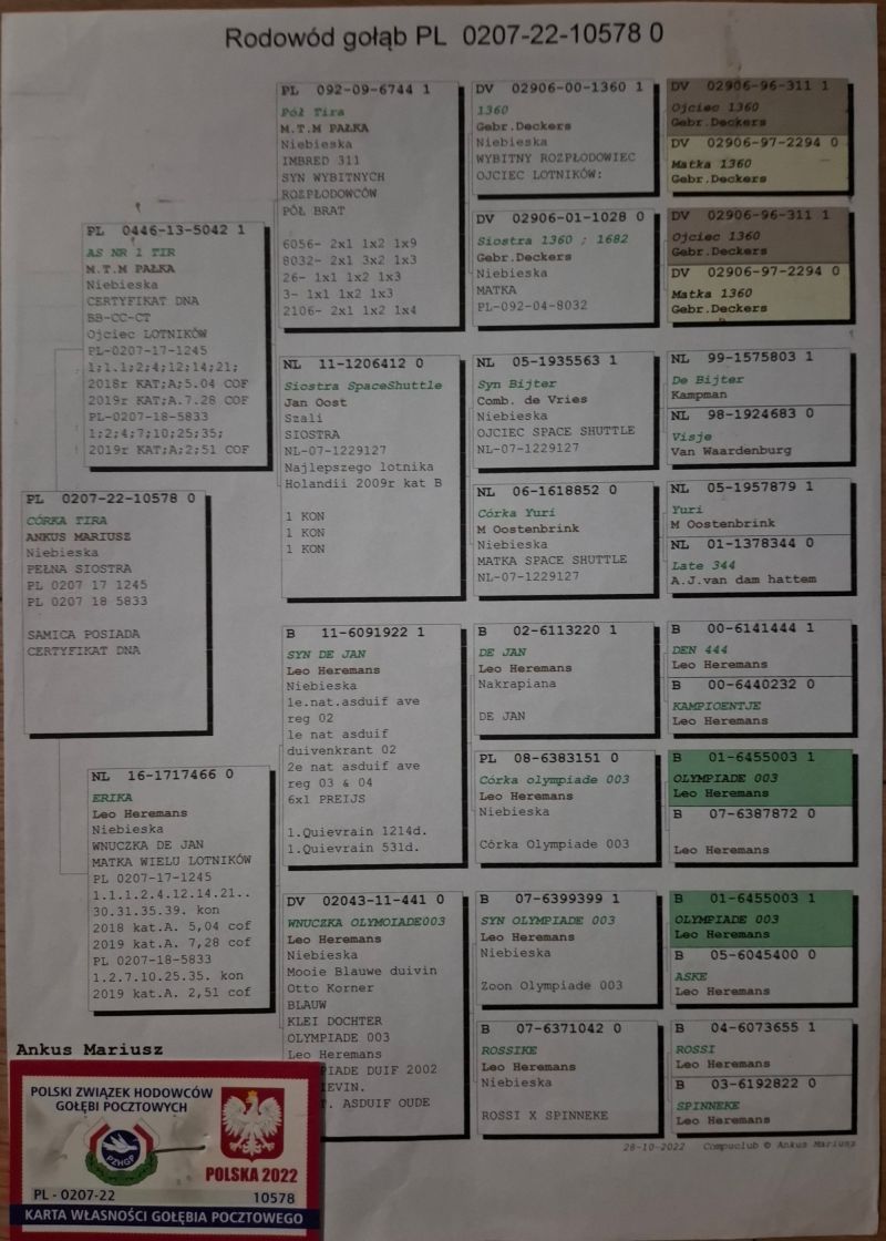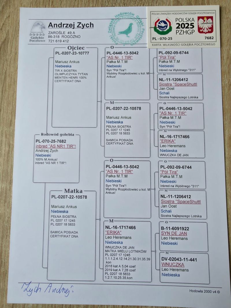 Oryginalny gołąb z hodowli Andrzeja Zycha. Szczegóły pochodzenia zamieszczone w rodowodzie. Więcej informacji pod numerem telefonu: 721 619 412