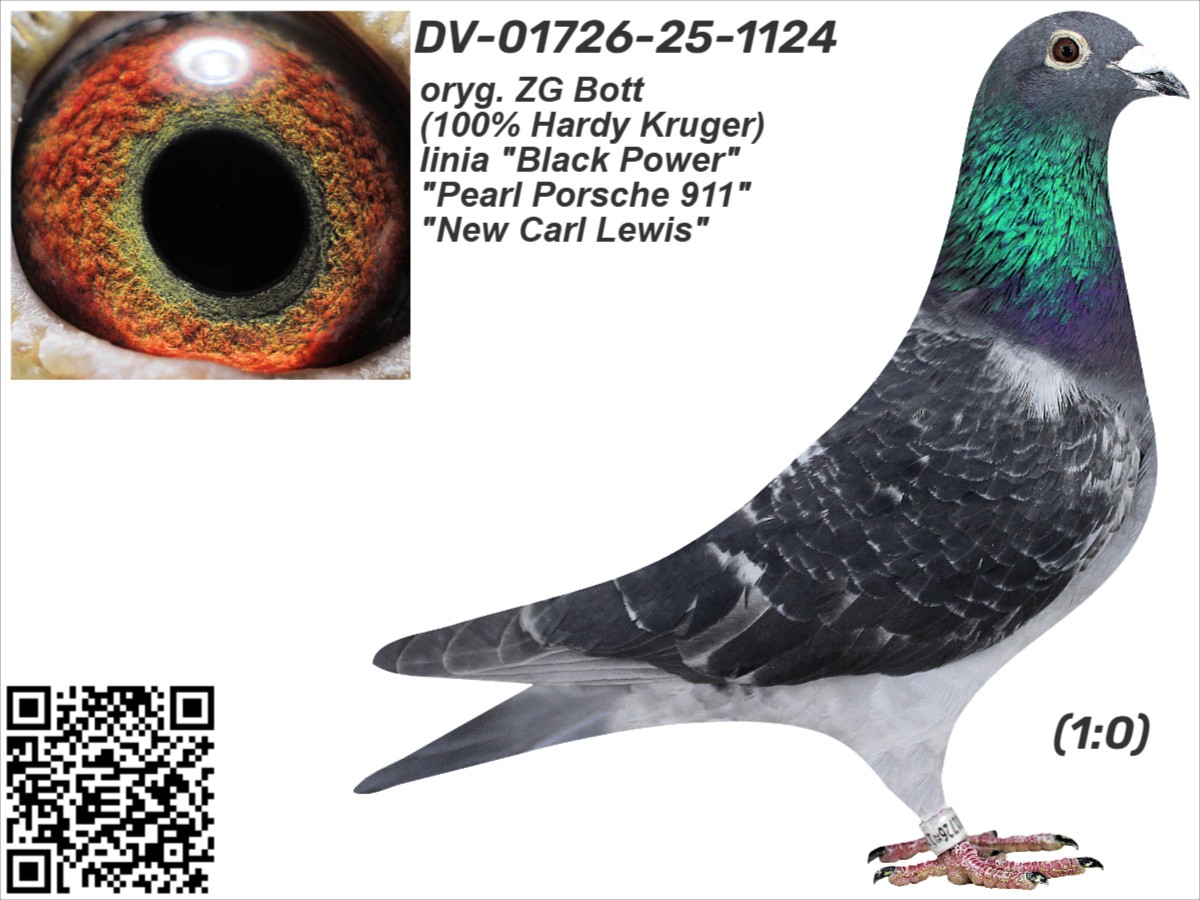 oryg. ZG Bott (100% Hardy Kruger), linia "Black Power", "Pearl Porsche 911", "New Carl Lewis" Szczegóły pochodzenia w rodowodzie. Gołąb jest sprzedawany bezpośrednio od hodowcy i znajduje się w Polsce, można go obejrzeć w miejscowości Zblewo (woj. pomorskie), po wcześniejszym kontakcie telefonicznym. Więcej informacji o gołębiu i transporcie pod nr tel.: 511 607 710.