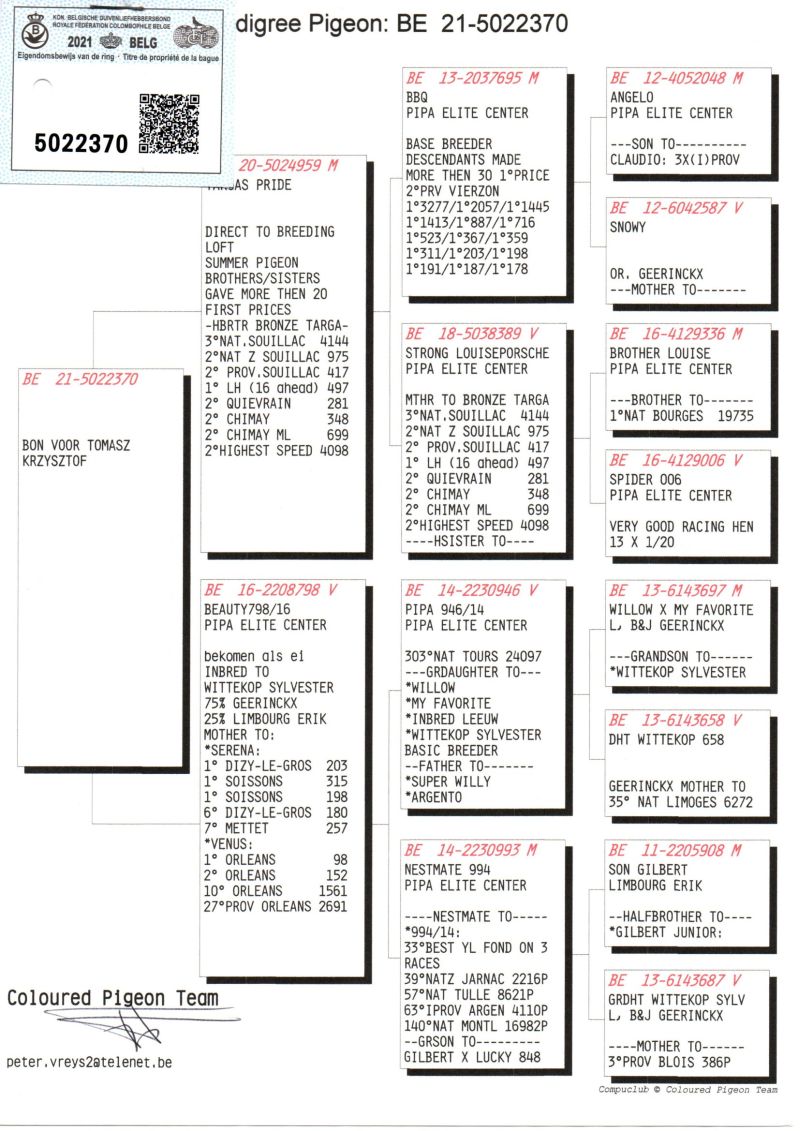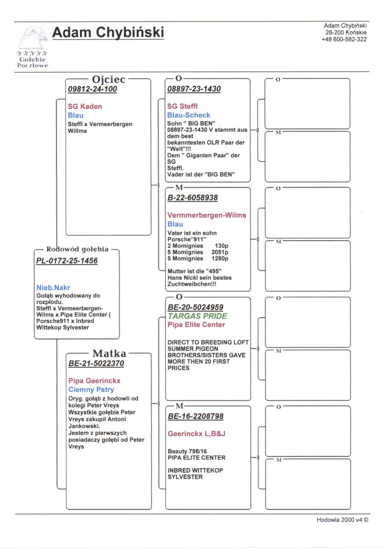 Witam. Do sprzedania są młode gołębie z hodowli Chybiński Adam i Tomasz. Gołębie wystawione na aukcji wywodzą sie z gołębi rozpłodowych sprowadzonych z wielu hodowli za granicą jak i od polskich hodowców. Wszystkie młode gołębie pochodzą z rozpłodu. Posiadamy gołębie od: Peter Van De Merwe, Rafał Pasoń, Roland & Denis Faber, Peter Vreys, Piotr Madej, Michał Trójczak, Roland Kling, Wiesław Mikołajów, Frank & Andy Kaden (gołębie na WG), Vermeerbergen - Wilms, Musik W&P, Bogumił Tokarczyk, Wiesław Owczarek, Dietmar Holtke (Hurrican 51, Fieneke 5000, Super Dohmen), Łyjak Marek & Andrzej, Adrian Kasprzak, Tomasz Trojan, Pałka M.T.M, Owczarek K.T.B, Bak Christian, Baesel Philipe, Hugo Vaasen, Alfred Strijker, John Stock, Jarosław Sznaucner, Jackowski Tomasz, Przemysław Wiktorowicz, Wiesław Młot, Kazimierz Druszcz, Gebraders Wolfs, Wiesław Piszczała i wiele innych. Zdjecia nie są profesjonalne ale gołębie są. Więcej informacji odnośnie gołębi pod numerem telefonu: Adam +48 600-582-322, Tomek +47 96873596 **koszty transportu ponosi kupujący