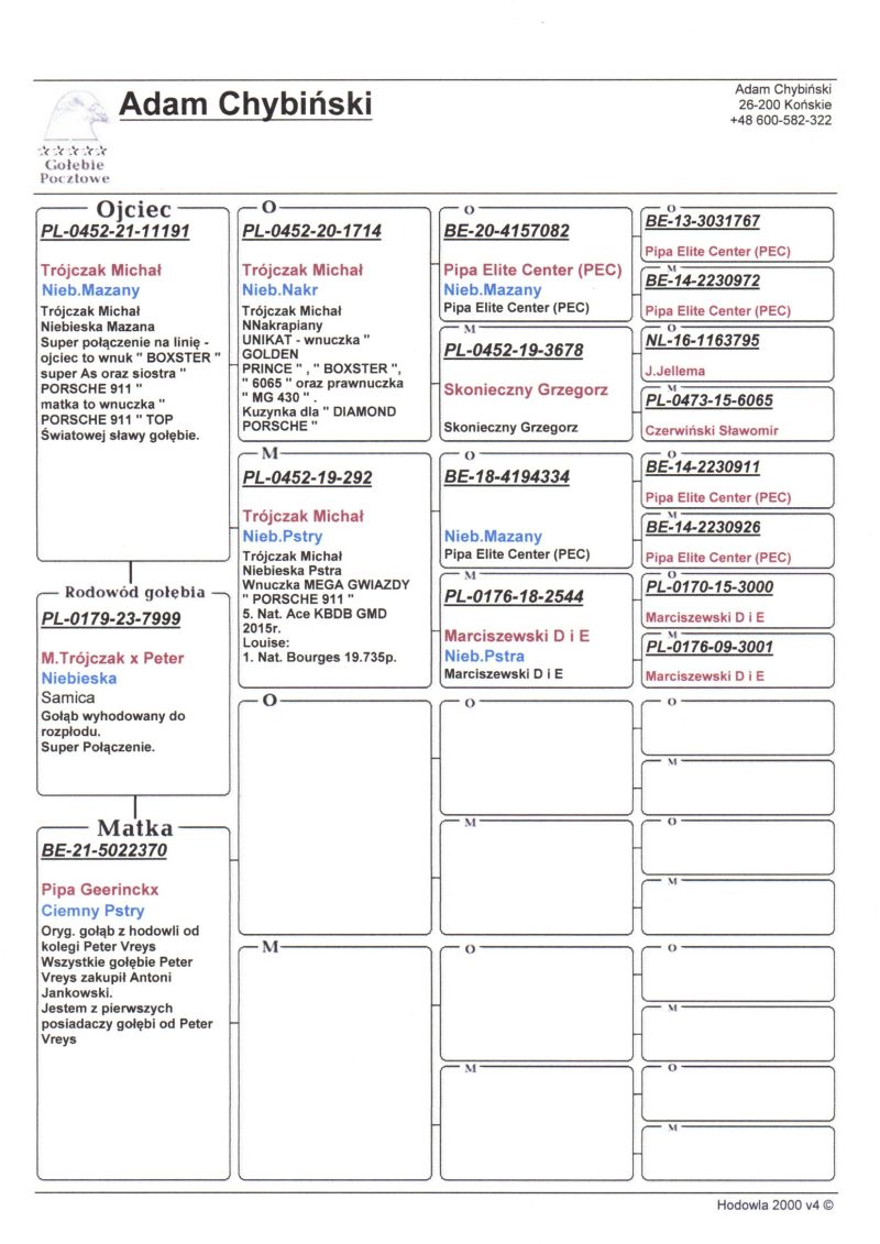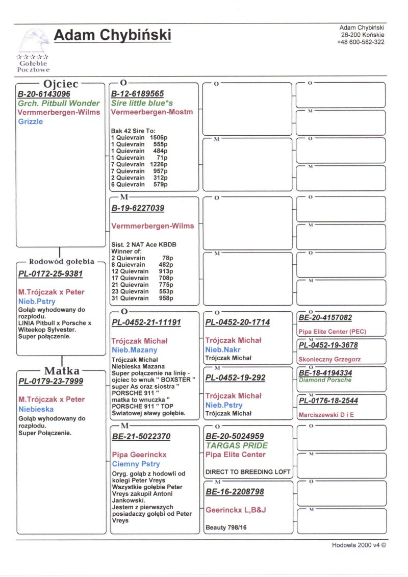 Witam. Do sprzedania są młode gołębie z hodowli Chybiński Adam i Tomasz. Gołębie wystawione na aukcji wywodzą sie z gołębi rozpłodowych sprowadzonych z wielu hodowli za granicą jak i od polskich hodowców. Wszystkie młode gołębie pochodzą z rozpłodu. Posiadamy gołębie od: Peter Van De Merwe, Rafał Pasoń, Roland & Denis Faber, Peter Vreys, Piotr Madej, Michał Trójczak, Roland Kling, Wiesław Mikołajów, Frank & Andy Kaden (gołębie na WG), Vermeerbergen - Wilms, Musik W&P, Bogumił Tokarczyk, Wiesław Owczarek, Dietmar Holtke (Hurrican 51, Fieneke 5000, Super Dohmen), Łyjak Marek & Andrzej, Adrian Kasprzak, Tomasz Trojan, Pałka M.T.M, Owczarek K.T.B, Bak Christian, Baesel Philipe, Hugo Vaasen, Alfred Strijker, John Stock, Jarosław Sznaucner, Jackowski Tomasz, Przemysław Wiktorowicz, Wiesław Młot, Kazimierz Druszcz, Gebraders Wolfs, Wiesław Piszczała i wiele innych. Zdjecia nie są profesjonalne ale gołębie są. Więcej informacji odnośnie gołębi pod numerem telefonu: Adam +48 600-582-322, Tomek +47 96873596 **koszty transportu ponosi kupujący