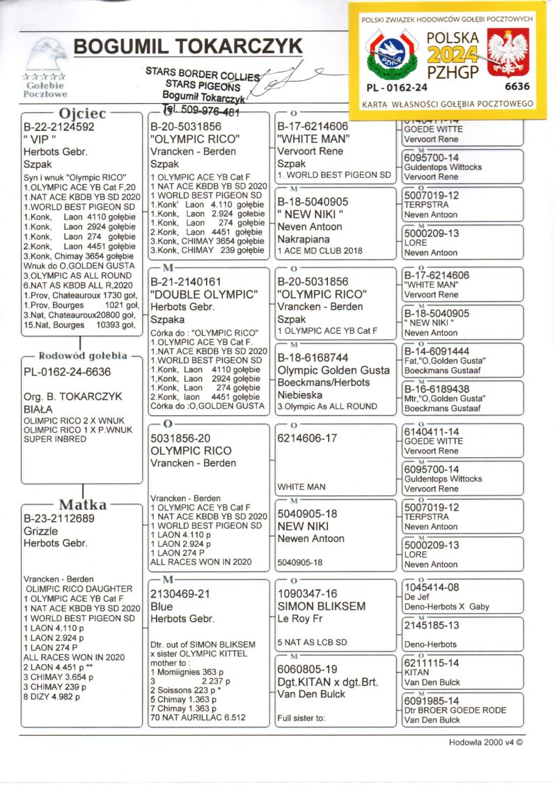 Witam. Do sprzedania są młode gołębie z hodowli Chybiński Adam i Tomasz. Gołębie wystawione na aukcji wywodzą sie z gołębi rozpłodowych sprowadzonych z wielu hodowli za granicą jak i od polskich hodowców. Wszystkie młode gołębie pochodzą z rozpłodu. Posiadamy gołębie od: Peter Van De Merwe, Rafał Pasoń, Roland & Denis Faber, Peter Vreys, Piotr Madej, Michał Trójczak, Roland Kling, Wiesław Mikołajów, Frank & Andy Kaden (gołębie na WG), Vermeerbergen - Wilms, Musik W&P, Bogumił Tokarczyk, Wiesław Owczarek, Dietmar Holtke (Hurrican 51, Fieneke 5000, Super Dohmen), Łyjak Marek & Andrzej, Adrian Kasprzak, Tomasz Trojan, Pałka M.T.M, Owczarek K.T.B, Bak Christian, Baesel Philipe, Hugo Vaasen, Alfred Strijker, John Stock, Jarosław Sznaucner, Jackowski Tomasz, Przemysław Wiktorowicz, Wiesław Młot, Kazimierz Druszcz, Gebraders Wolfs, Wiesław Piszczała i wiele innych. Zdjecia nie są profesjonalne ale gołębie są. Więcej informacji odnośnie gołębi pod numerem telefonu: Adam +48 600-582-322, Tomek +47 96873596 **koszty transportu ponosi kupujący