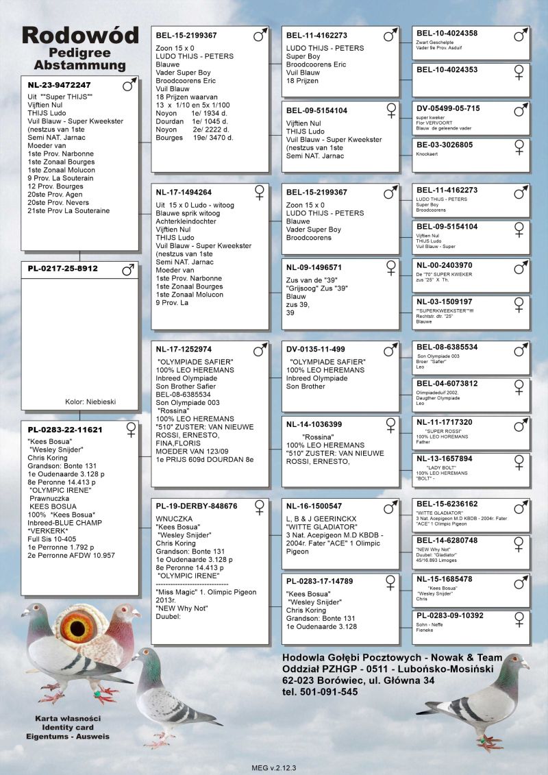 Oryginalny gołąb z hodowli Nowak & Team, szczegóły pochodzenia, rodowód poniżej.