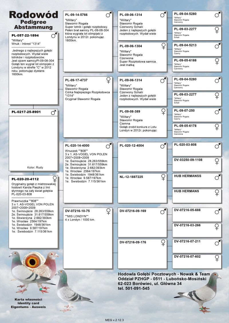 Oryginalny gołąb z hodowli Nowak & Team, szczegóły pochodzenia, rodowód poniżej.