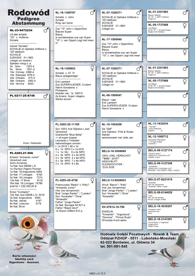 Oryginalny gołąb z hodowli Nowak & Team, szczegóły pochodzenia, rodowód poniżej.