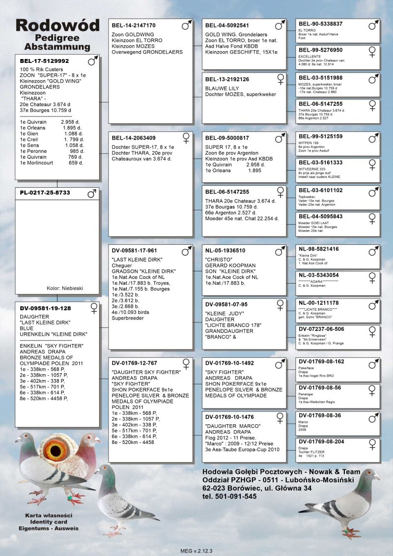 Oryginalny gołąb z hodowli Nowak & Team, szczegóły pochodzenia, rodowód poniżej.