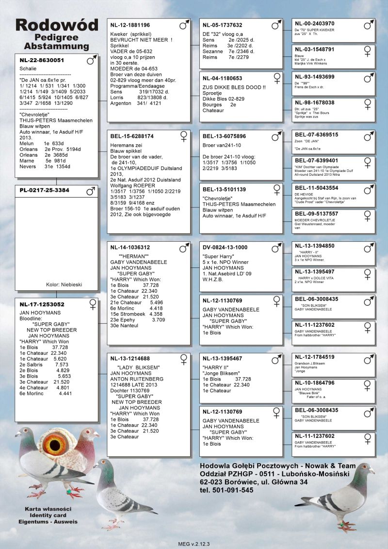 Oryginalny gołąb z hodowli Nowak & Team, szczegóły pochodzenia, rodowód poniżej.