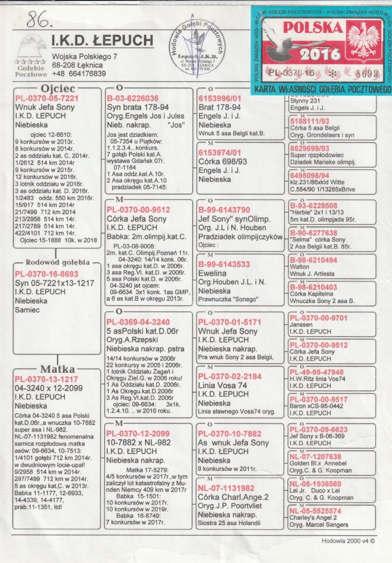 STACJA HODOWLANA-LOTOWA FRANKIEWICZ PODGÓRSKI POSIADA NA SPRZEDAZ MŁODE GOŁEBIE Z GOŁEBNIKA ROZPŁODOWEGO Z GOŁĘBI ANDREAS DRAPA IKD LEPUCH DM PALARSCY B MICHALAK JAN HOOYNAMS J PASZEK PODANA PŁEC JEST ORIENTACYJNA WIECEJ INFORMACJI POD NUMEREM 733700117 GOŁABIE ZASZCZEPIONE PHA+OSPA ZAPEWNIAMY TRANSPORT KOSZT 120ZŁ OSTATNIA AUKCJA TRANSPORT W DNIACH 16-18.02