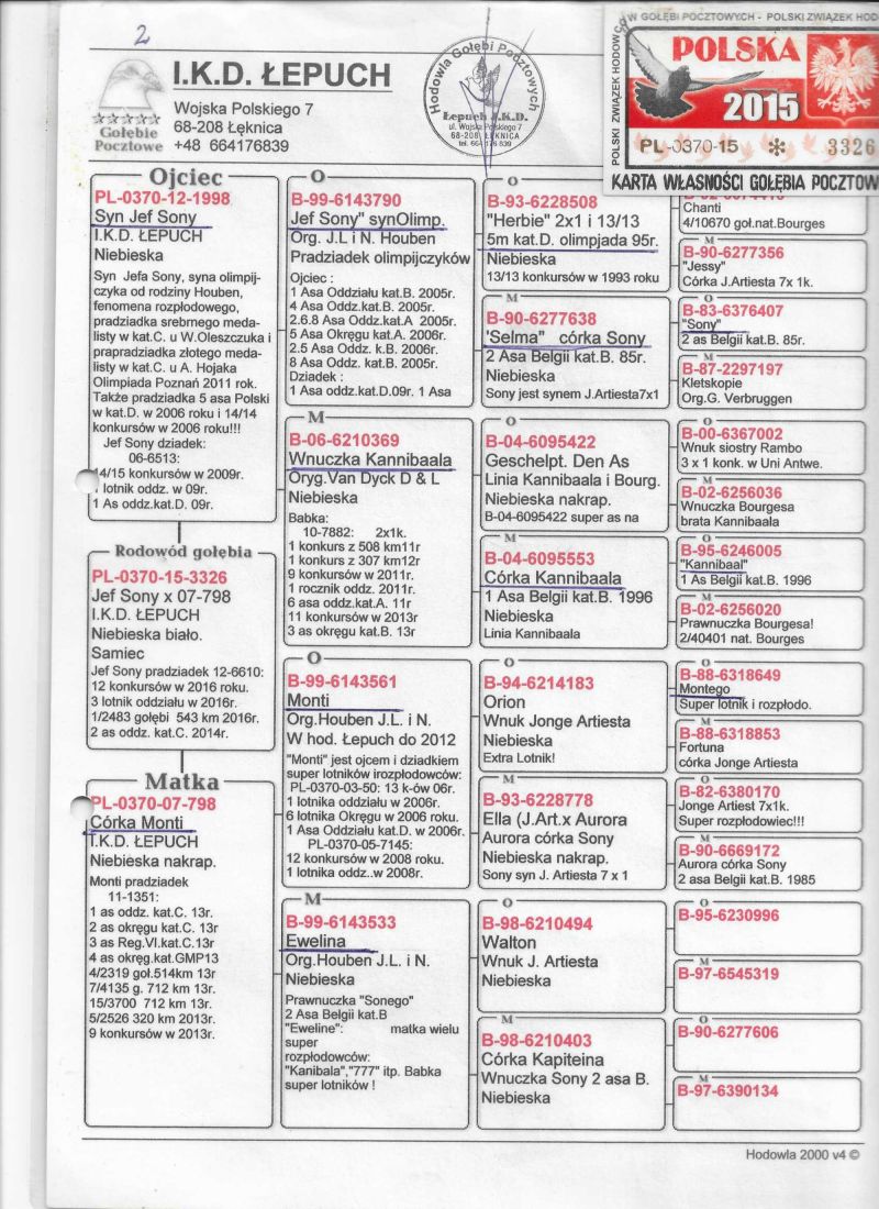 STACJA HODOWLANA-LOTOWA FRANKIEWICZ PODGÓRSKI POSIADA NA SPRZEDAZ MŁODE GOŁEBIE Z GOŁEBNIKA ROZPŁODOWEGO Z GOŁĘBI ANDREAS DRAPA IKD LEPUCH DM PALARSCY B MICHALAK JAN HOOYNAMS J PASZEK PODANA PŁEC JEST ORIENTACYJNA WIECEJ INFORMACJI POD NUMEREM 733700117 GOŁABIE ZASZCZEPIONE PHA+OSPA ZAPEWNIAMY TRANSPORT KOSZT 120ZŁ OSTATNIA AUKCJA TRANSPORT W DNIACH 16-18.02