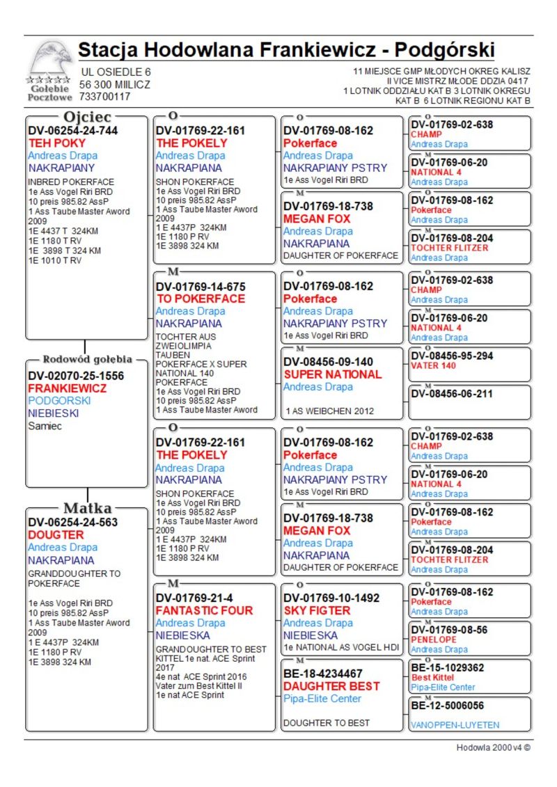 STACJA HODOWLANA-LOTOWA FRANKIEWICZ PODGÓRSKI POSIADA NA SPRZEDAZ MŁODE GOŁEBIE Z GOŁEBNIKA ROZPŁODOWEGO Z GOŁĘBI ANDREAS DRAPA IKD LEPUCH DM PALARSCY B MICHALAK JAN HOOYNAMS J PASZEK PODANA PŁEC JEST ORIENTACYJNA WIECEJ INFORMACJI POD NUMEREM 733700117 GOŁABIE ZASZCZEPIONE PHA+OSPA ZAPEWNIAMY TRANSPORT KOSZT 120ZŁ OSTATNIA AUKCJA TRANSPORT W DNIACH 16-18.02