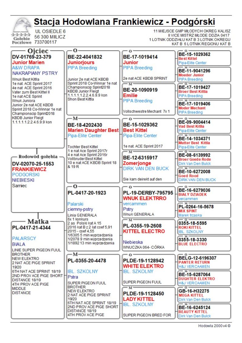 STACJA HODOWLANA-LOTOWA FRANKIEWICZ PODGÓRSKI POSIADA NA SPRZEDAZ MŁODE GOŁEBIE Z GOŁEBNIKA ROZPŁODOWEGO Z GOŁĘBI ANDREAS DRAPA IKD LEPUCH DM PALARSCY B MICHALAK JAN HOOYNAMS J PASZEK PODANA PŁEC JEST ORIENTACYJNA WIECEJ INFORMACJI POD NUMEREM 733700117 GOŁABIE ZASZCZEPIONE PHA+OSPA ZAPEWNIAMY TRANSPORT KOSZT 120ZŁ OSTATNIA AUKCJA TRANSPORT W DNIACH 16-18.02
