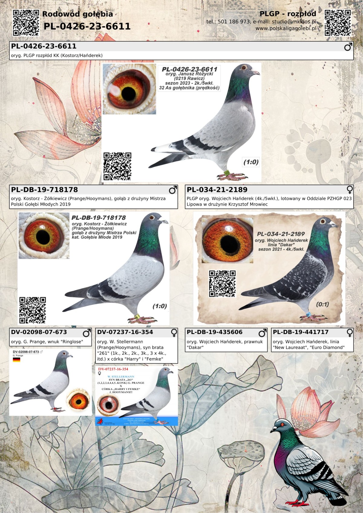 Płeć: samiec Hodowca - rasa: Polska Liga Gołębi Pocztowych 2023 Zakończenie: 15.02.2026 godz. 19:50
