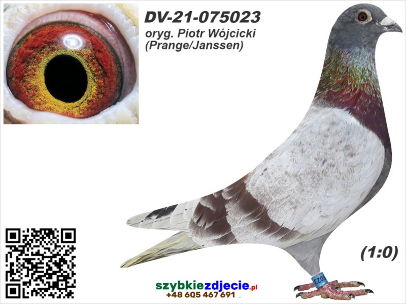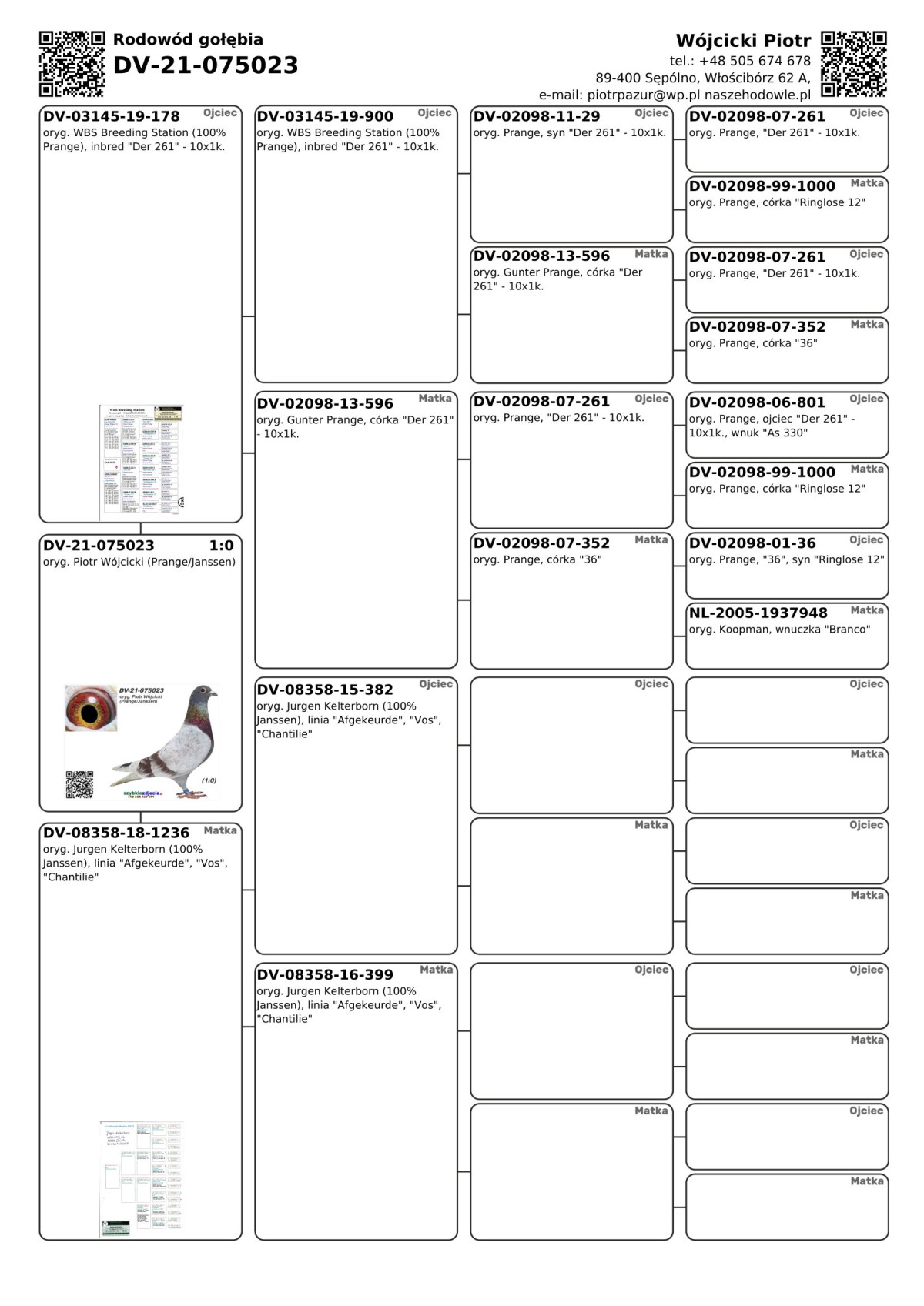 oryg. Piotr Wójcicki (Prange/ Janssen) Szczegóły pochodzenia i wyniki lotowe w rodowodzie i załączonych materiałach. Gołębie były lotowane w oddziałach PZHGP. Więcej informacji o gołębiu pod nr tel.: 501 186 973. Uwaga!!! - zdjęcie gołębia było robione po zakończeniu sezonu lotowego - 2021.