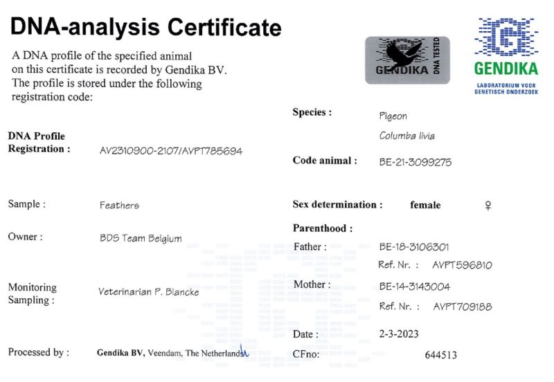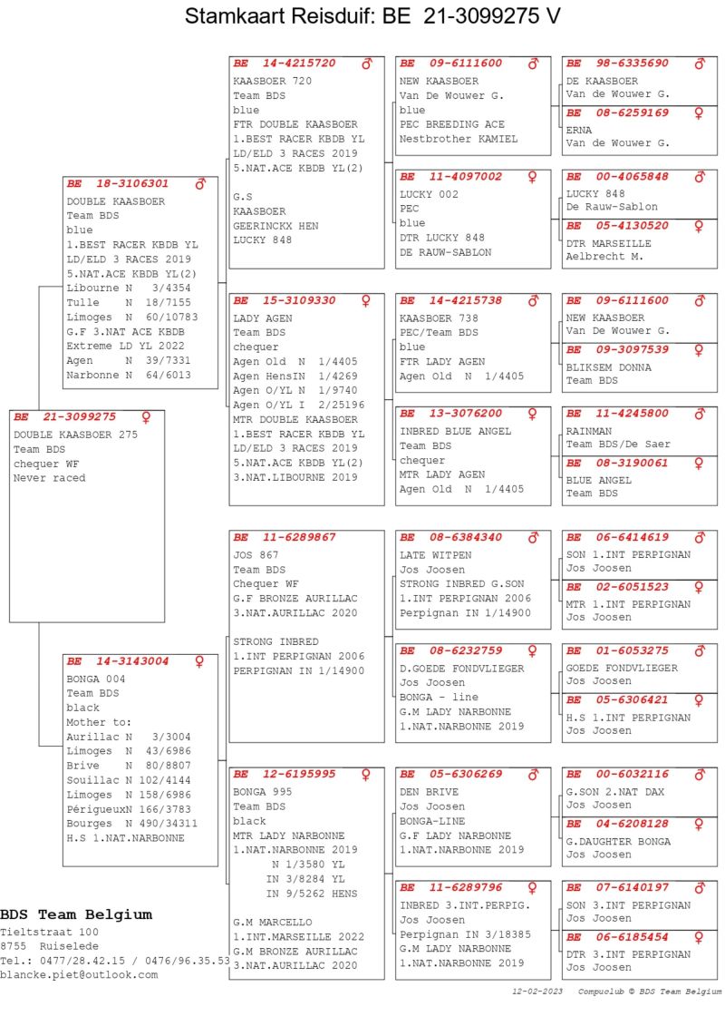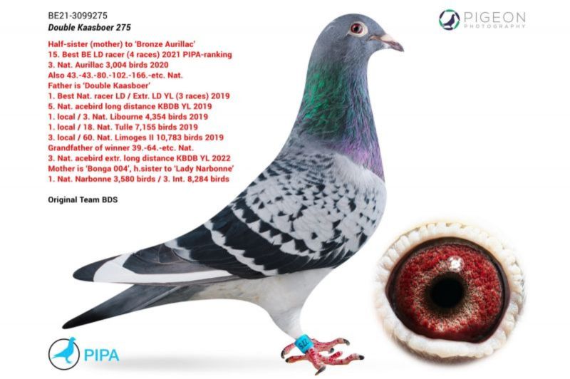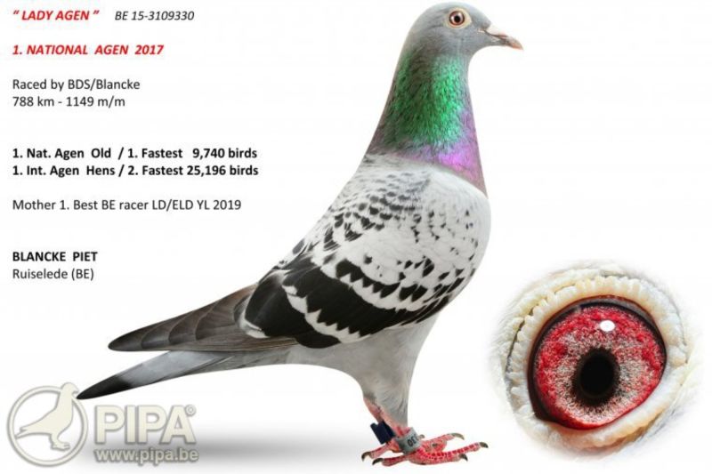 Córka DOUBLE KAASBOER- najlepszego roczniaka Belgii w lotach dalekich. DOUBLE KAASBOER (na filmie) sprzedany na PIPA za 144 tys. euro (ponad 600 tys. zł). Wnuczka LADY AGEN- 1 konkurs z Agen na 9.740 goł. Młody po dwóch wnukach DOUBLE KAASBOER wygrał lot finałowy na WG. Szczegóły pochodzenia w rodowodzie i pod nr tel. 696 241 555