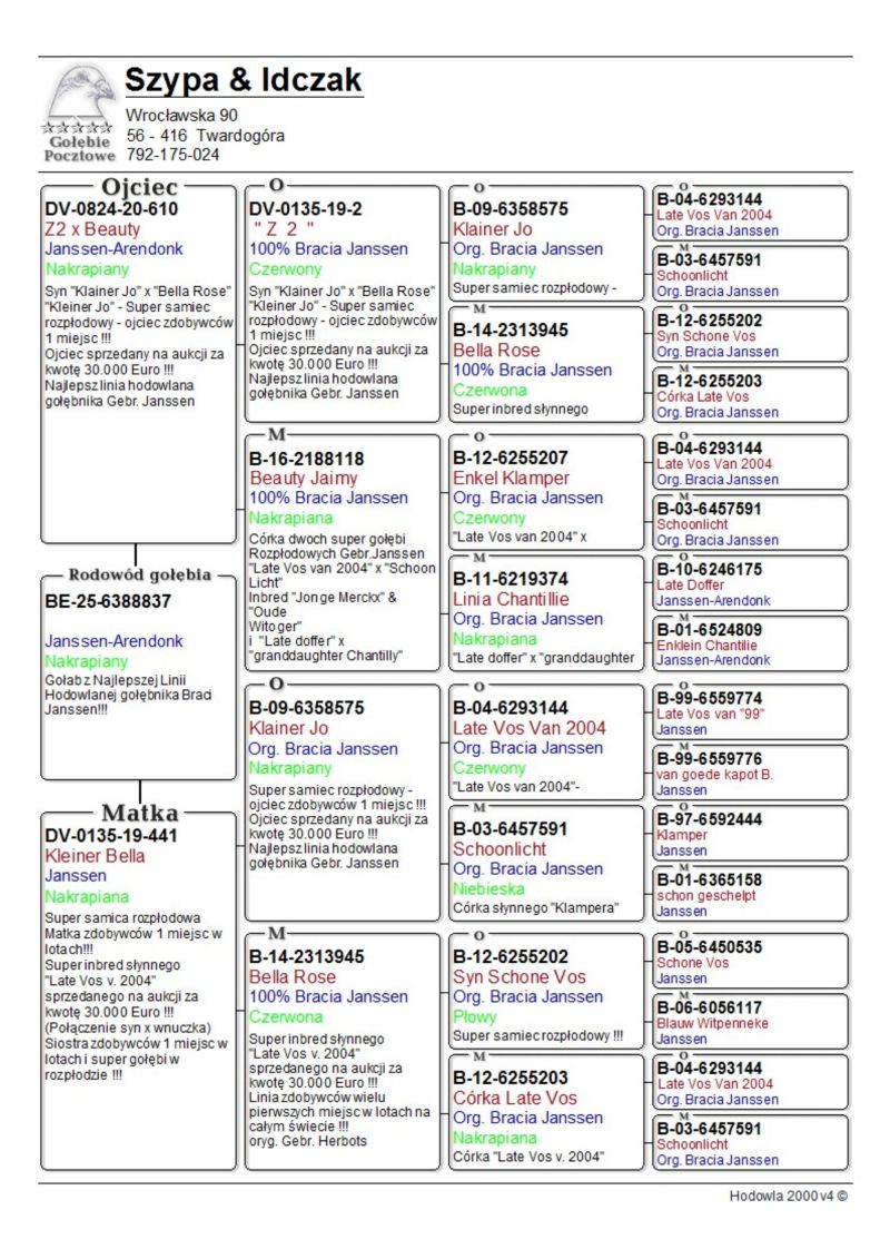 Profesjonalna hodowla z wieloletnim doświadczeniem, posiadająca w swoim stadzie materiał najwyższej światowej klasy. Więcej informacji w załączonych materiałach oraz pod nr tel. 792-175-024.Wysyłka 100 zł UWAGA -Transport gołębi odbędzie się między 16-Luty .a 18-Luty 2026 WSZYSTKIE GOŁĘBIE BĘDĄ PO KURACJACH-GOTOWE DO ŁĄCZENIA W PARY PŁEĆ GOŁĘBI MŁODYCH PISANA ORIENTACYJNIE