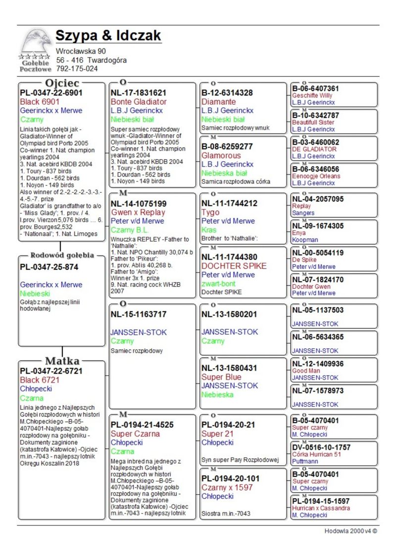 Profesjonalna hodowla z wieloletnim doświadczeniem, posiadająca w swoim stadzie materiał najwyższej światowej klasy. Więcej informacji w załączonych materiałach oraz pod nr tel. 792-175-024.Wysyłka 100 zł UWAGA -Transport gołębi odbędzie się między 16-Luty .a 18-Luty 2026 WSZYSTKIE GOŁĘBIE BĘDĄ PO KURACJACH-GOTOWE DO ŁĄCZENIA W PARY PŁEĆ GOŁĘBI MŁODYCH PISANA ORIENTACYJNIE