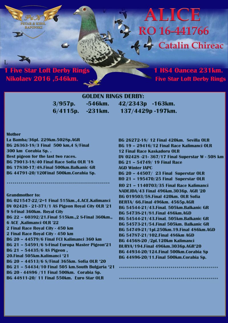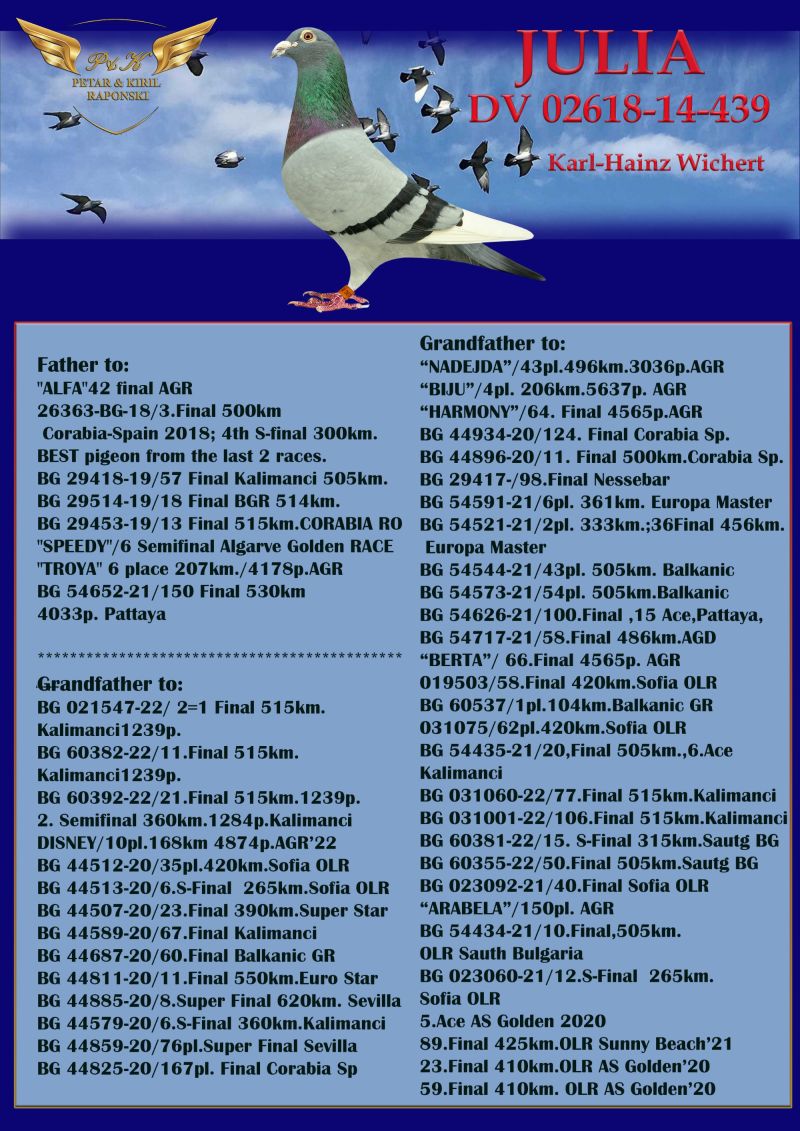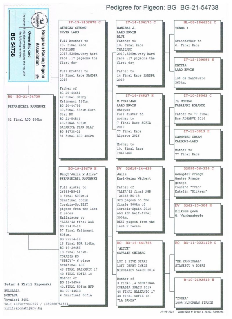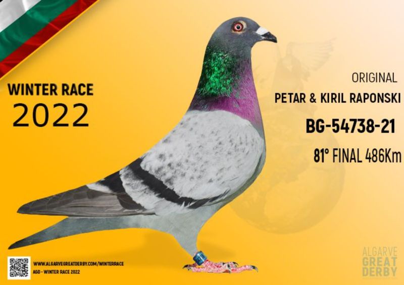 BG-21-54738 *** 81. gołąb z finału AGD 486 km., AFRICAN STRONG x córka Julia i Alice, oryg. Petar & Kiril RAPONSKI *** TYLKO KUP TERAZ ***