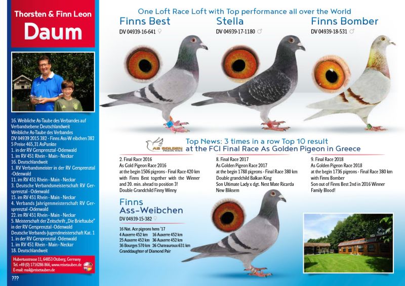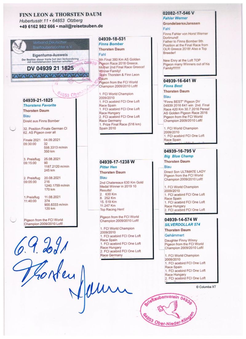 DV-04939-21-1825 ** FINNS BOMBER x PITTER HEN, TOP OLR, 32. gołąb z FINAŁU GERMAN CLASSIC, Oryg. F.L. & Thorsten DAUM *** TYLKO KUP TERAZ ***