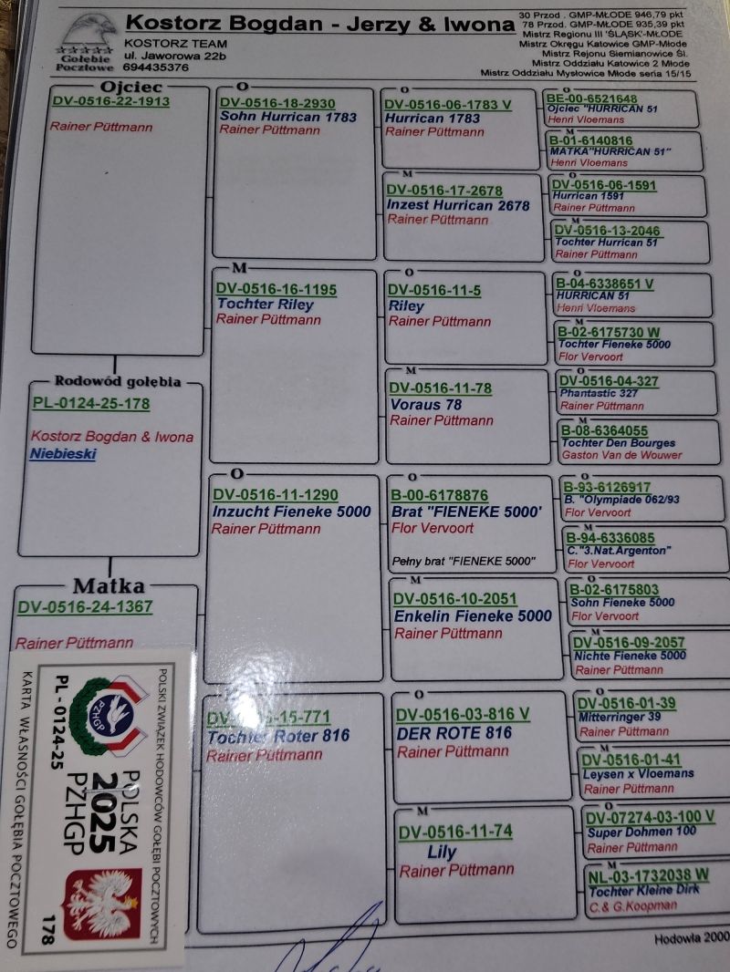 PL-0124-25-178 Oryg. Kostorz Bogdan&Iwona, Puttmann Hurrican x Puttmann Fieneke 5000