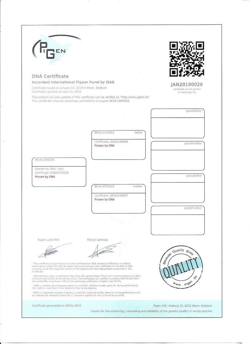 Linia belgijskich gołębi olimpijskich. Pełny brat 1 gołębia Belgii OLYMPIC BOURGES, ojciec Vandenabeele wnuk Bliksema. Matka to córka OLYMPIC SHINAINA. Szczegóły pochodzenia w rodowodzie i pod nr tel. 696 241 555