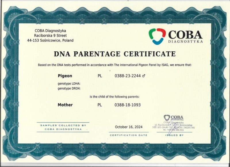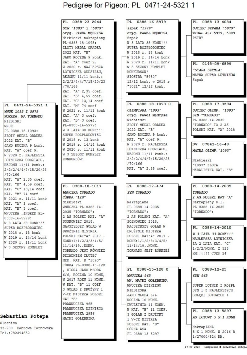 PL-0471-24-5321 - oryg. S. Potepa (100% P. Mędrysa) wnuk olimp 1093, szpaka 5979, pokrew. na Tornado