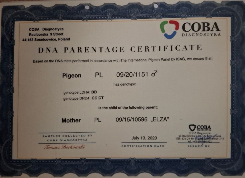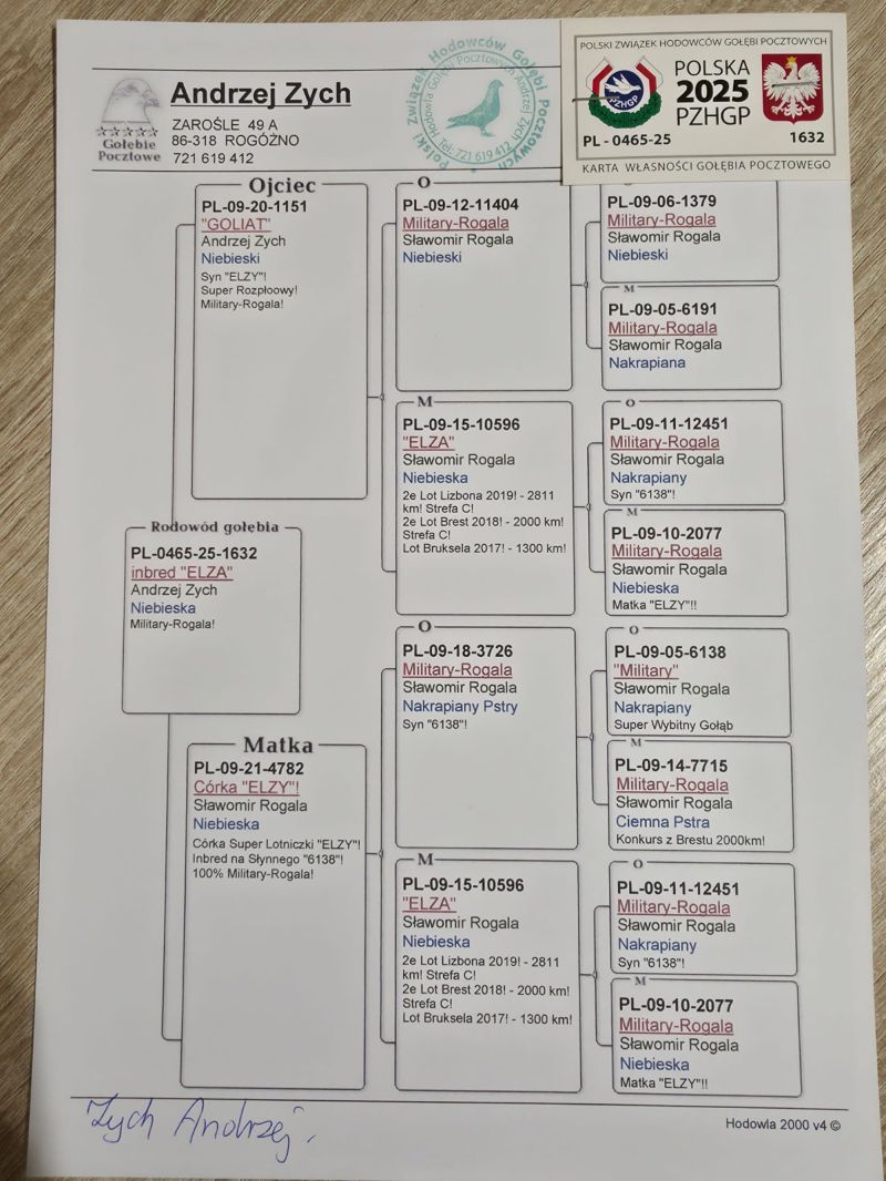 Oryginalny gołąb z hodowli Andrzeja Zycha. Szczegóły pochodzenia zamieszczone w rodowodzie. Więcej informacji pod numerem telefonu: 721 619 412