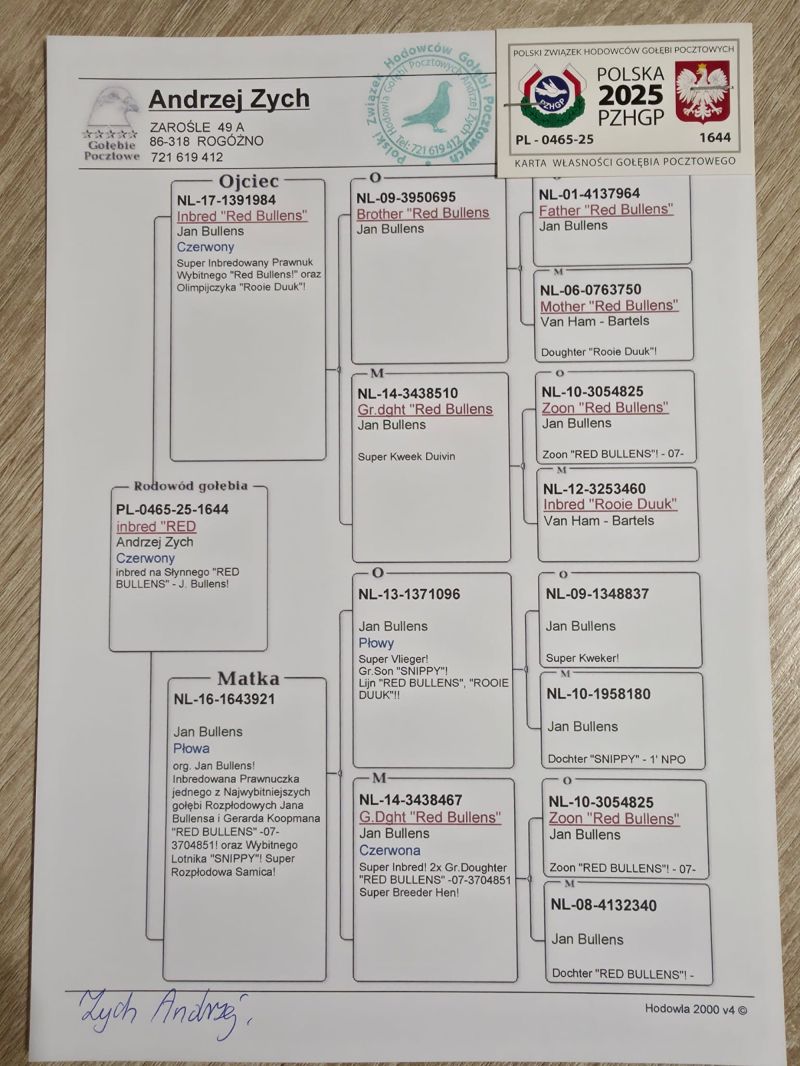 Oryginalny gołąb z hodowli Andrzeja Zycha. Szczegóły pochodzenia zamieszczone w rodowodzie. Więcej informacji pod numerem telefonu: 721 619 412