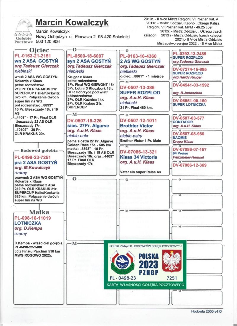 Oryginalny gołąb z hodowli Marcin Kowalczyk.# Szczegóły pochodzenia w rodowodzie. # Gołąb zaszczepiony przeciw Paramyxowirozie, Herpeswirus, Adenowirus , Ospa. # Więcej informacji pod nr tel. 503 120 906 # Możliwy transport 120 zł.