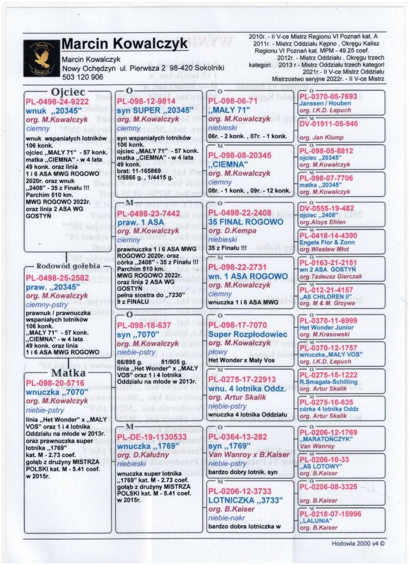 Oryginalny gołąb z hodowli Marcin Kowalczyk.# Szczegóły pochodzenia w rodowodzie. # Gołąb zaszczepiony przeciw Paramyxowirozie, Herpeswirus, Adenowirus , Ospa. # Więcej informacji pod nr tel. 503 120 906 # Możliwy transport 120 zł.