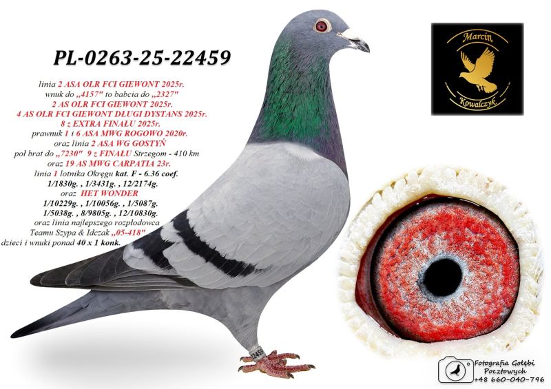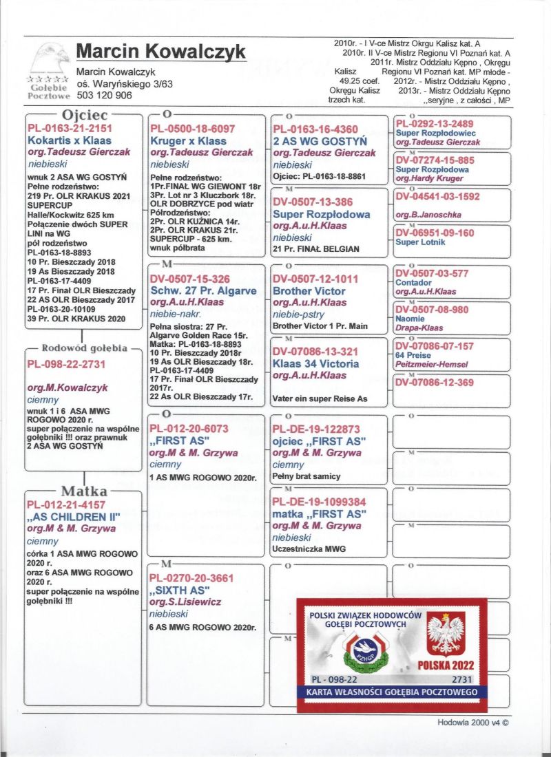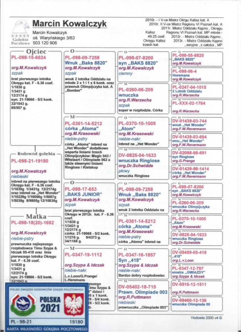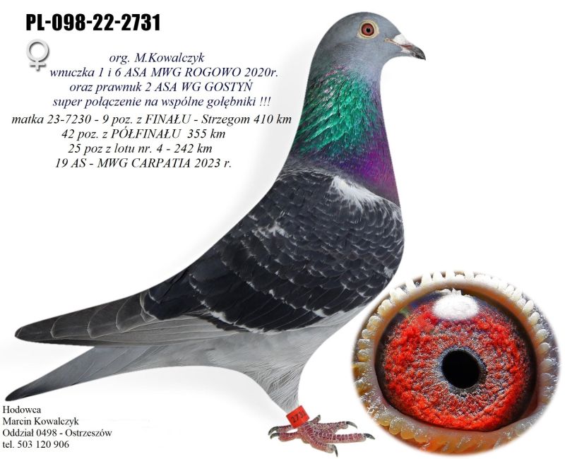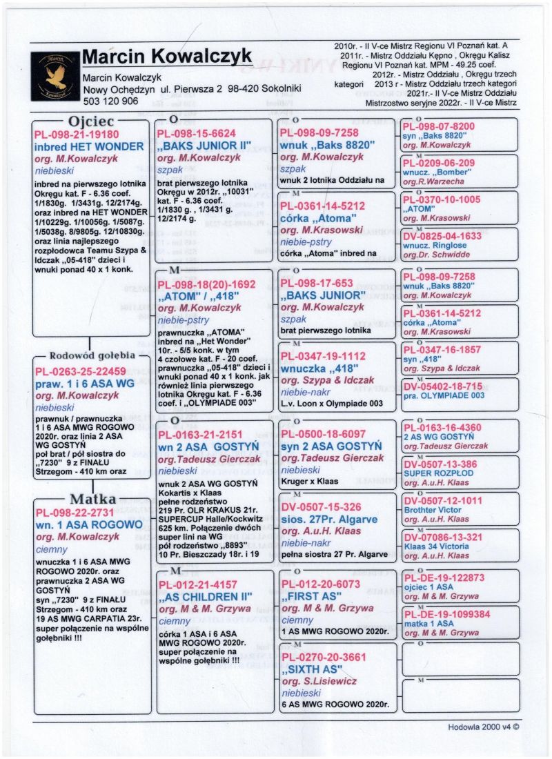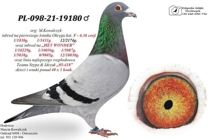 Oryginalny gołąb z hodowli Marcin Kowalczyk.# Szczegóły pochodzenia w rodowodzie. # Gołąb zaszczepiony przeciw Paramyxowirozie, Herpeswirus, Adenowirus , Ospa. # Więcej informacji pod nr tel. 503 120 906 # Możliwy transport 120 zł.