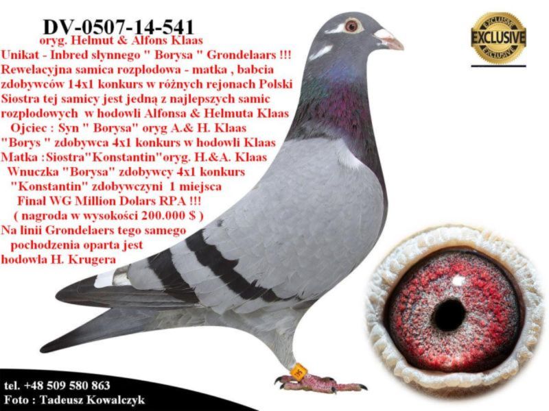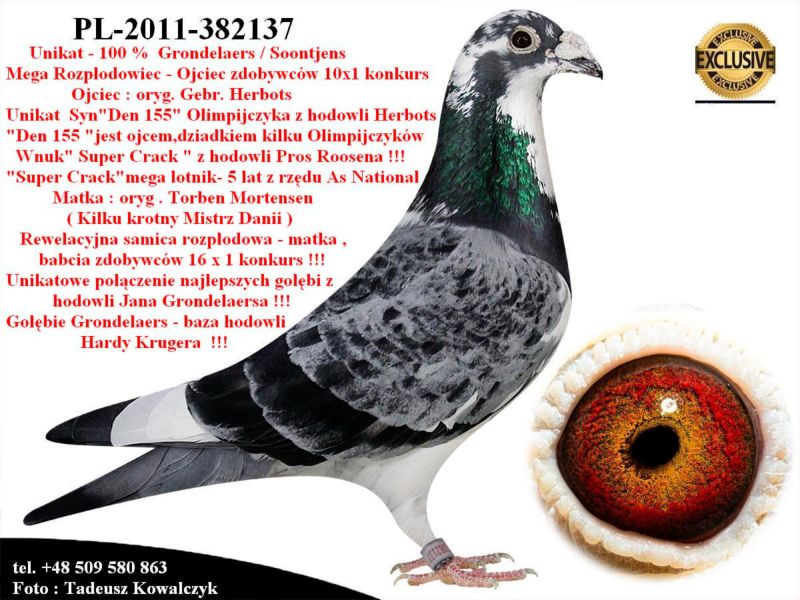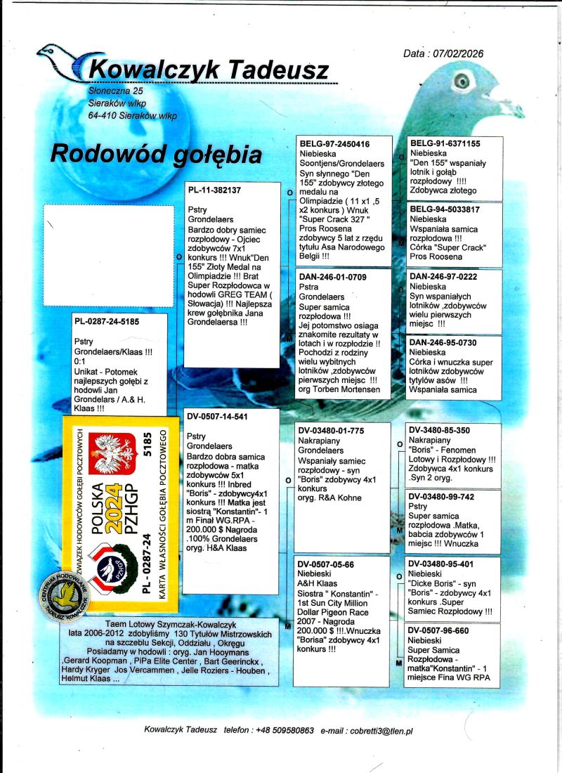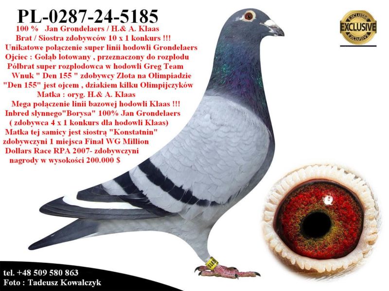 PL-0287-24-5185 Unikat- Potomek najlepszych gołębi z hodowli Grondelars / Klaas