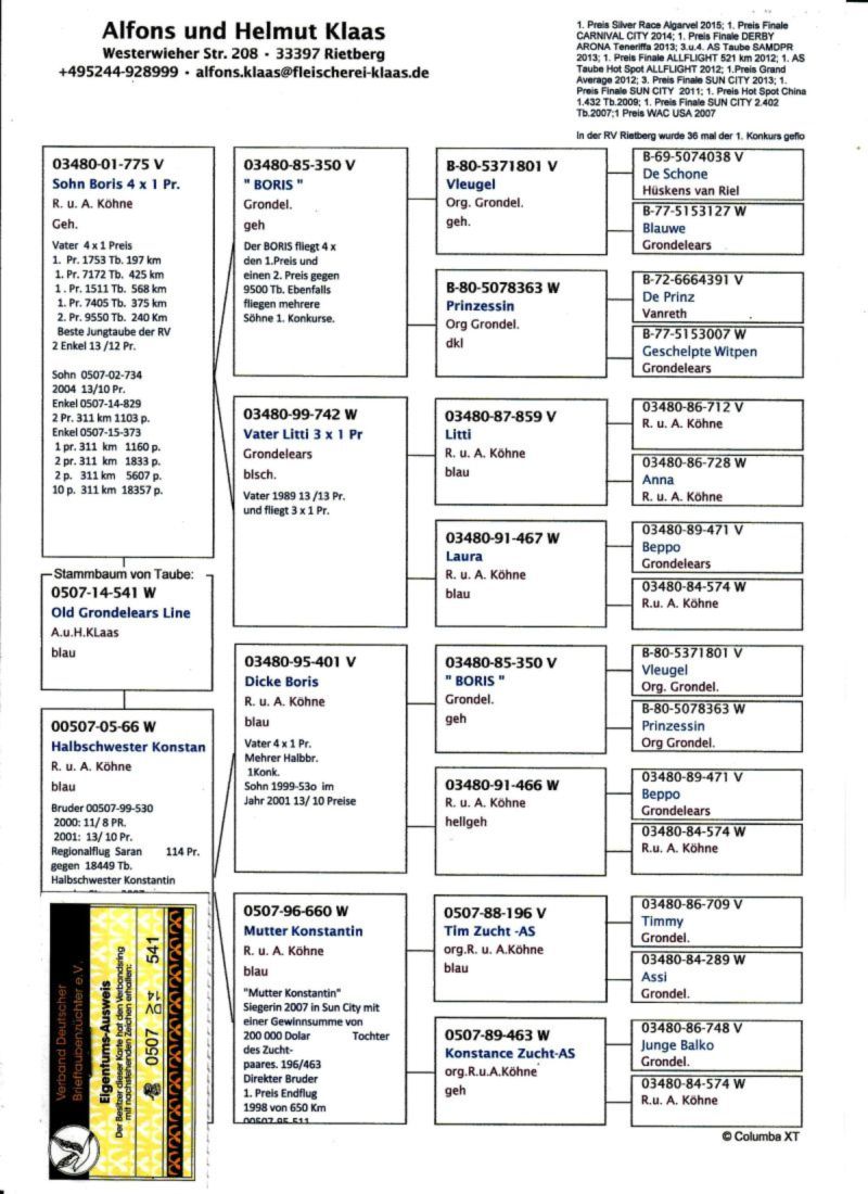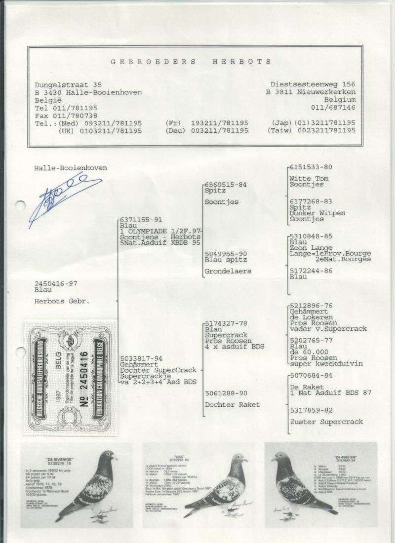 AUKCJA PROMOCYJNA (Cena obowiązuje wyłącznie na tej aukcji) Profesjonalna hodowla z wieloletnim doświadczeniem, posiadająca w swoim stadzie materiał najwyższej światowej klasy, wywodzący się od takich hodowców jak: Jan Hooymans, Gerard Koopman, Mike Ganus, Tjeerd & Jouke Elzinga, Gino Clicque, Jos Vercammen, Jelle Roziers, Bart Geerinckx, Batenburg – v/d Merwe, Altmiks – Pigeons, Jo & Florian Hendriks, Kornelis Winner Loft – linia „Romario”, W & F Ebben, Bert Braspenning, Dirk van den Bulck, Peter v/d Merwe, Jan van de Pasch, Van Elsacker-Jepsen, Roger Desmet – Matthijs, Arie Dijkstra, Leo Heremans, Pieter Veenstra, Gaby Vandenabeele, Karl-Heinz Wichert, Hardy Kruger, Helmut & Alfons Klaas, Gebr. Janssen. Najwyższej klasy materiał hodowlany – najlepsze linie danych Hodowców. Wszystkie wylicytowane gołębie będą dostarczane firmą kurierską.